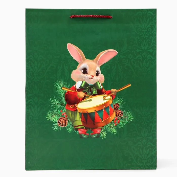 Пакет подарочный новогодний "Заяц - барабанщик", 26×32×12 см — Характеристики