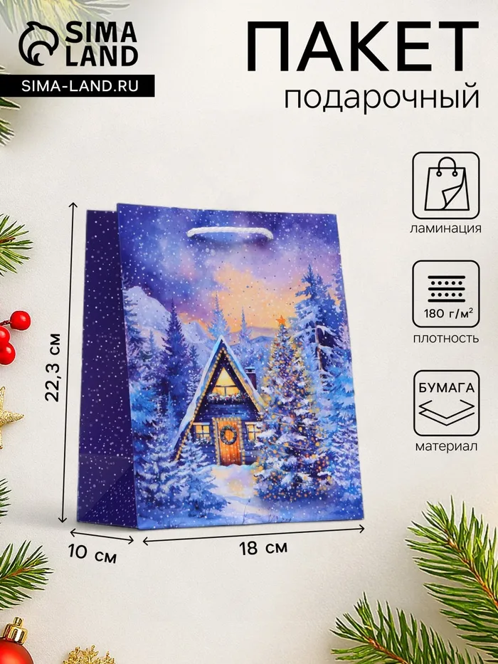 Пакет подарочный новогодний «Зимний дом», 18×22.3×10 см — Характеристики