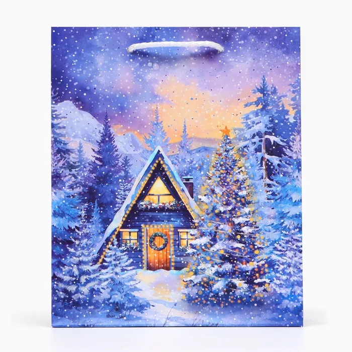 Пакет подарочный новогодний «Зимний дом», 18×22.3×10 см