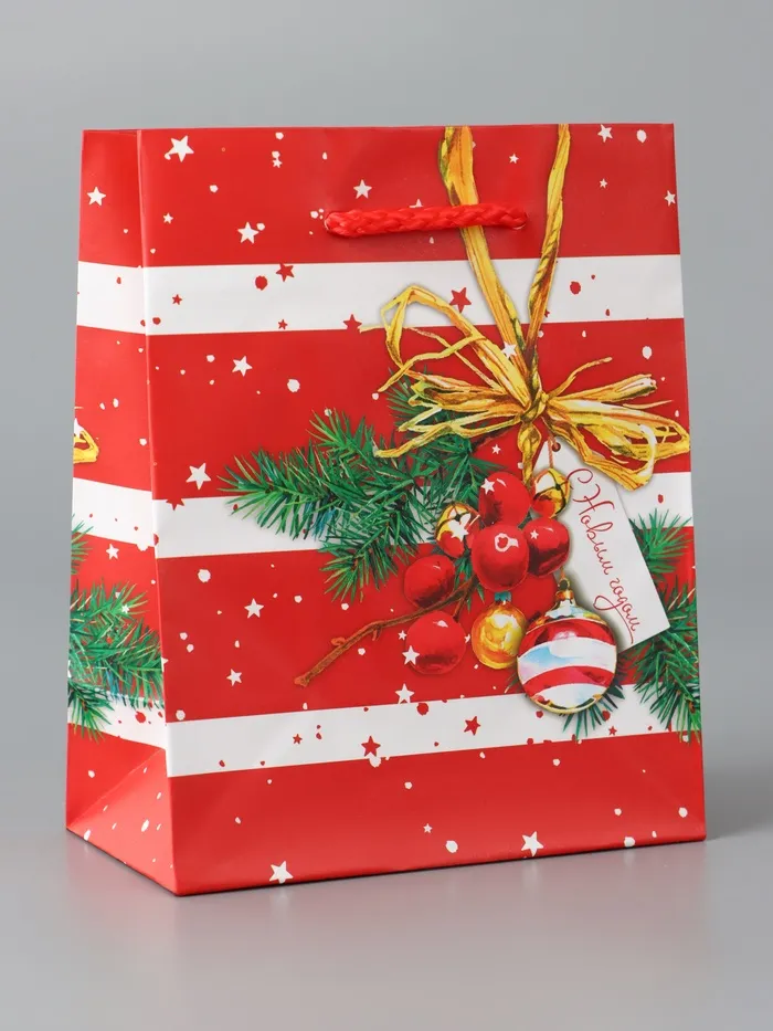 - Этот удивительный подарочный пакет станет идеальным дополнением к вашему новогоднему подарку, придавая ему шикарный и праздничный вид.