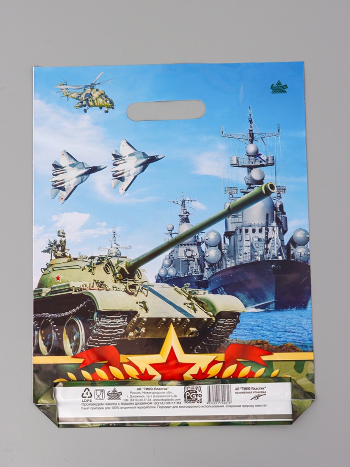 Пакет подарочный «Оборона» полиэтиленовый с вырубной ручкой, 40×31 см 60 мкм — Характеристики