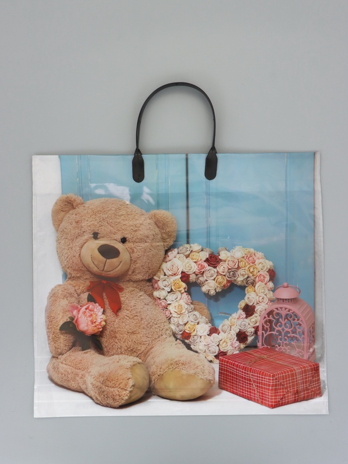 - Практичная вместительность и надежность: Донная складка увеличивает полезный объем, а плотность материала 60 мкм обеспечивает достаточную прочность для стандартных подарков к этим датам: бутылок, сладких наборов, носков, тематических сувениров или аксессуаров.