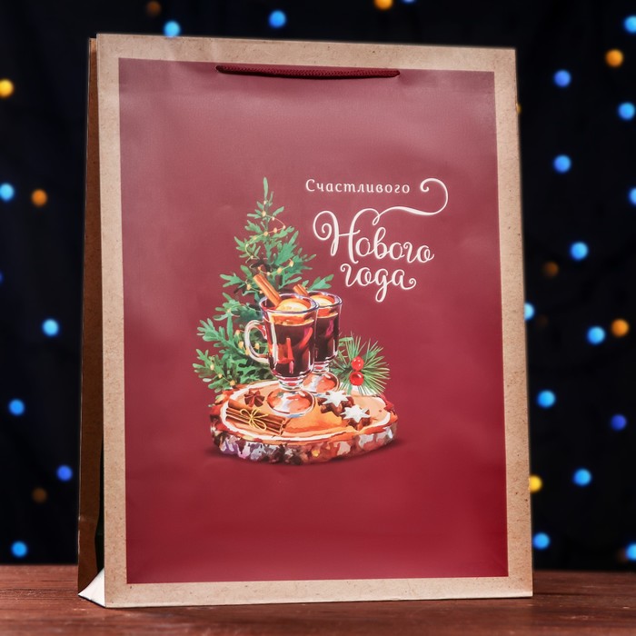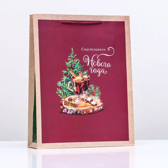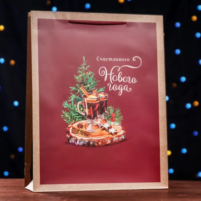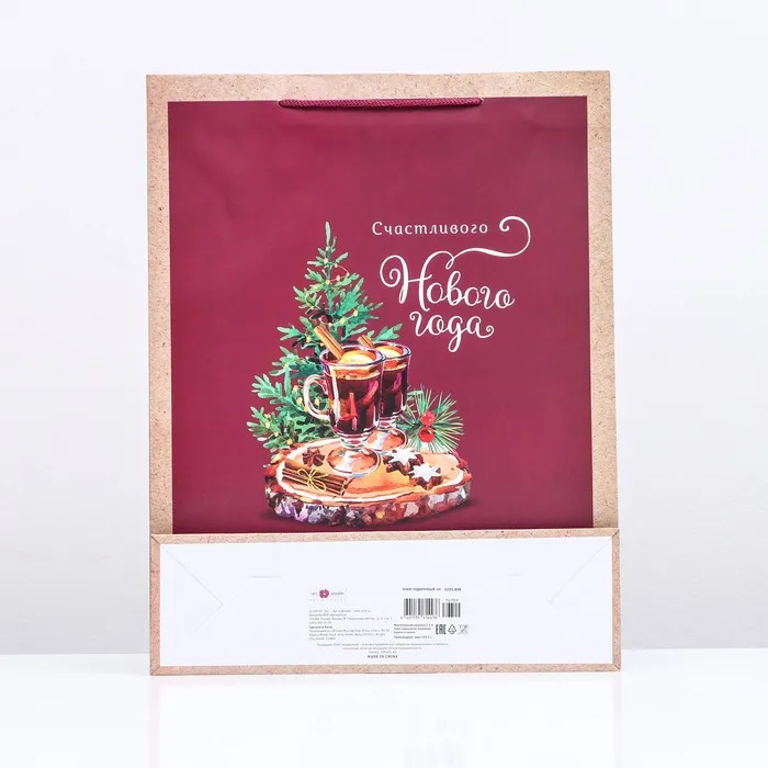 Новогодний подарочный пакет с ярким, красочным рисунком создаст праздничное настроение.