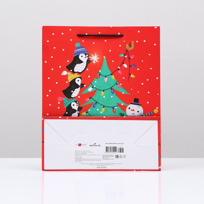 Пакет подарочный "Пингвины на ёлке", 26 х 32 х 12 см