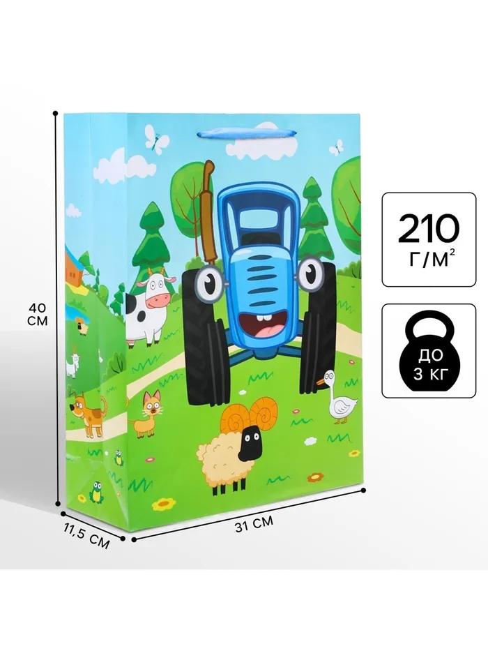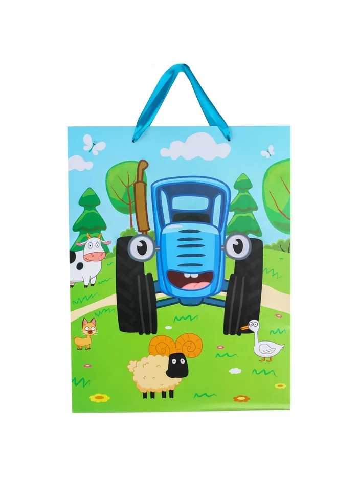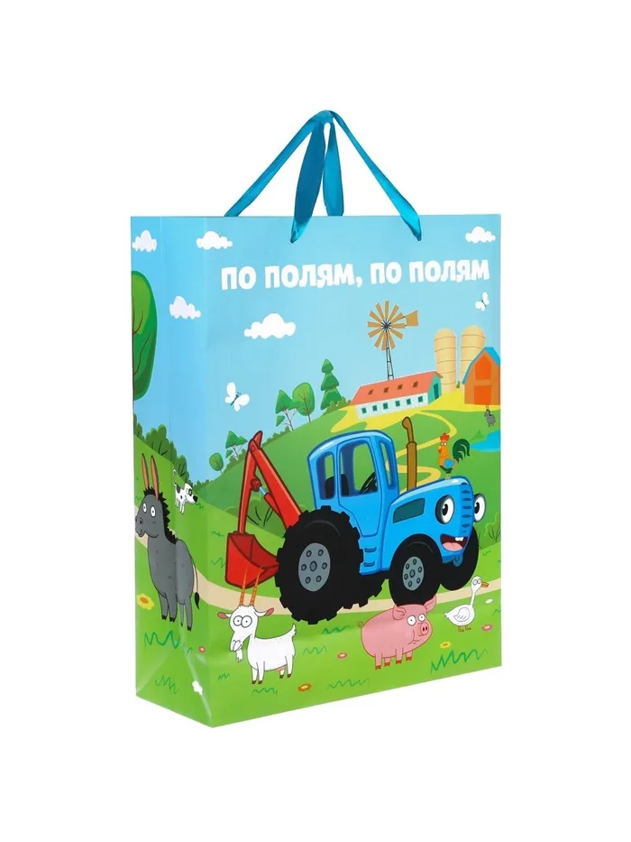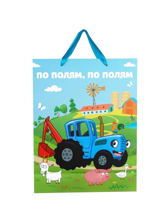 Пакет подарочный «По полям», 31×40×11.5 см, упаковка, Синий трактор — Характеристики