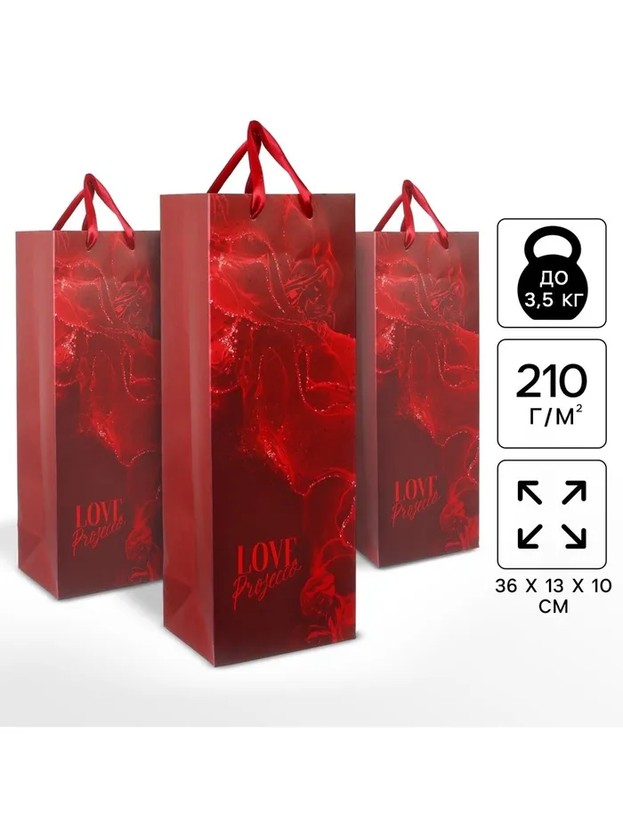 Пакет подарочный под бутылку, набор 3 шт, 36 х 13 х 10 см, упаковка — Характеристики