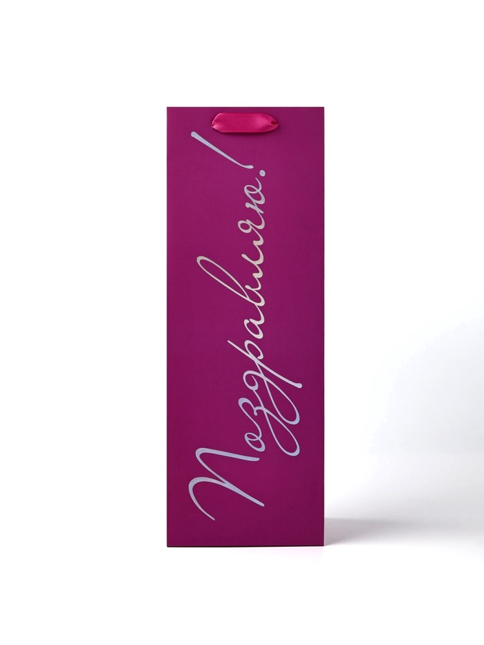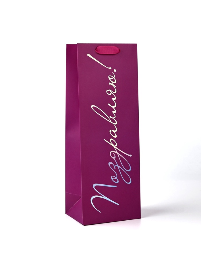 Пакет подарочный под бутылку «Поздравляю», голография, 13 х 10 х 36 см — Характеристики