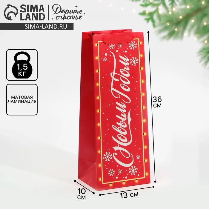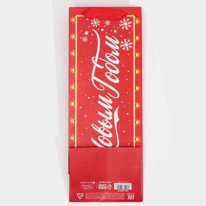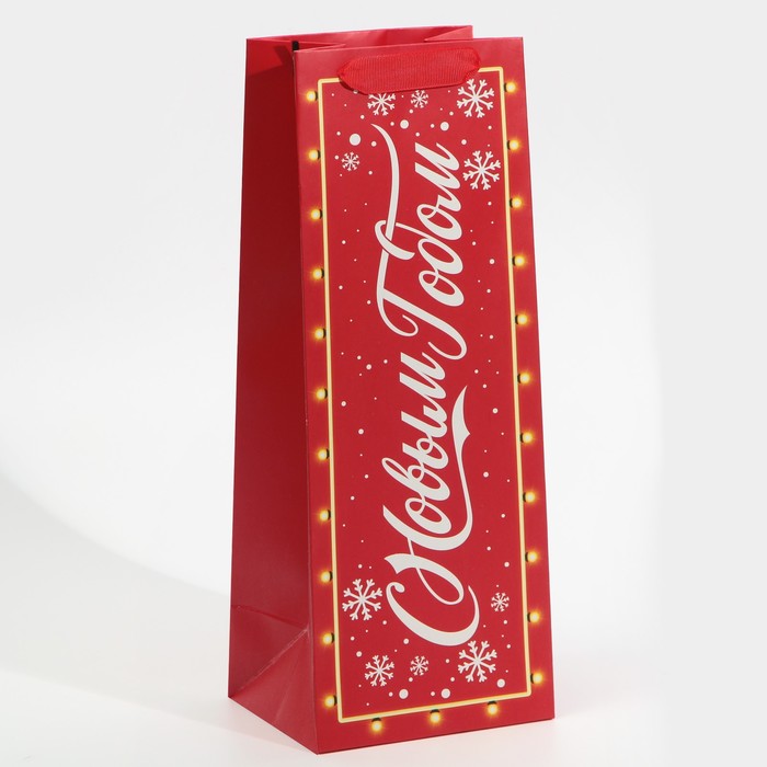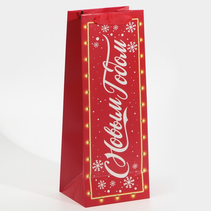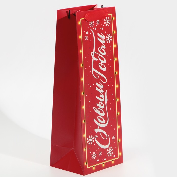 Пакет подарочный под бутылку «С Новым годом!», 13 х 35 х 10 см — Характеристики