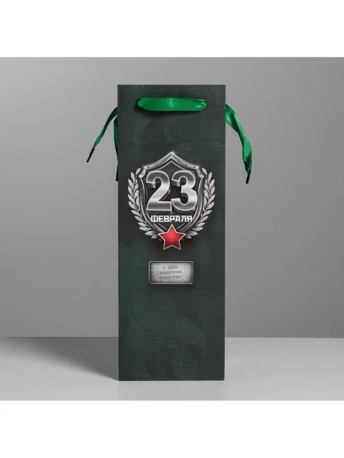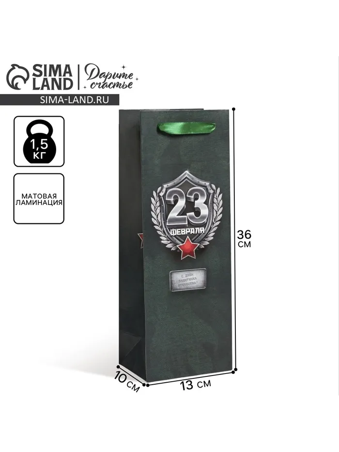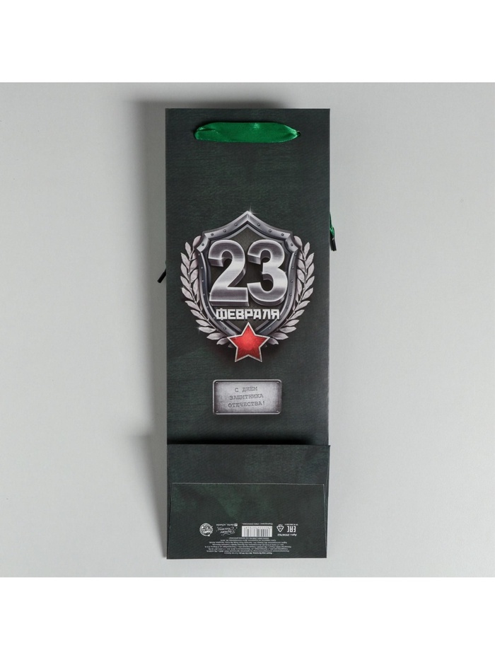 Пакет подарочный под бутылку, упаковка, «23 Февраля», 36 х 13 х 10 см — Характеристики