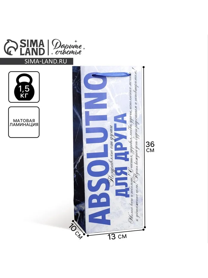Пакет подарочный под бутылку, упаковка, «Абсолютно», 36 х 13 х 10 см — Характеристики
