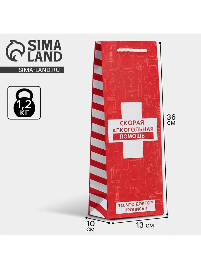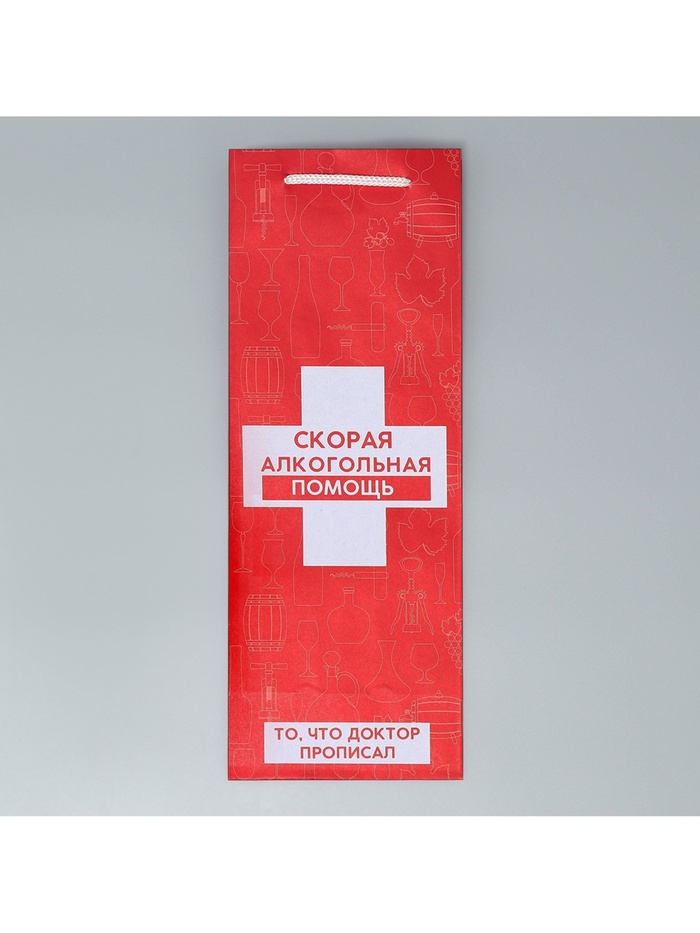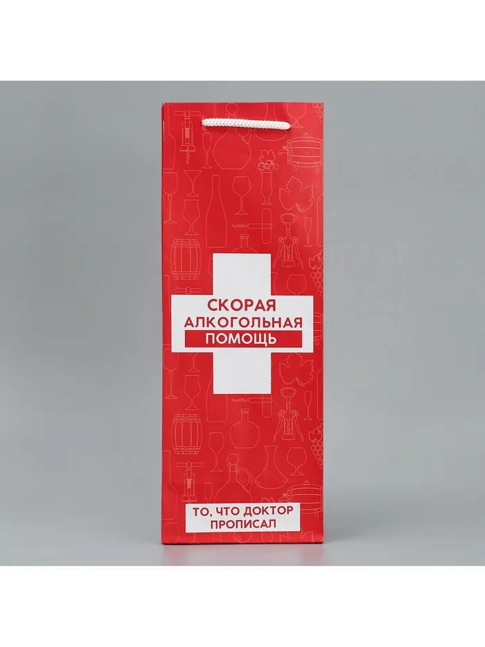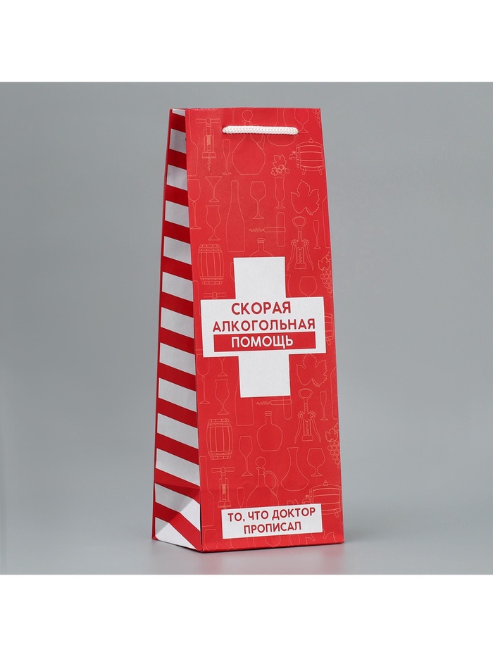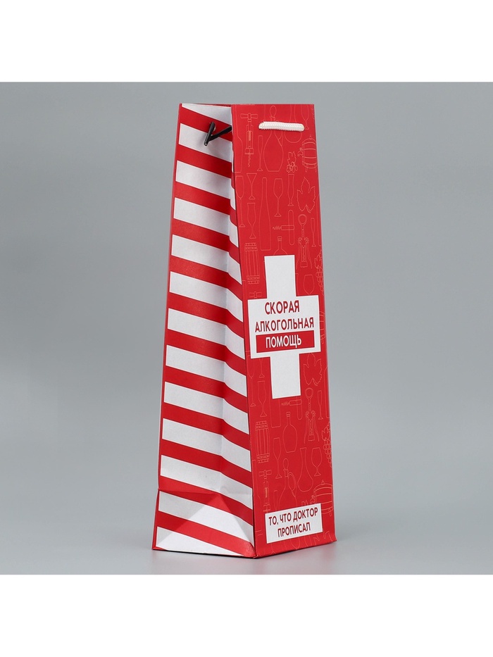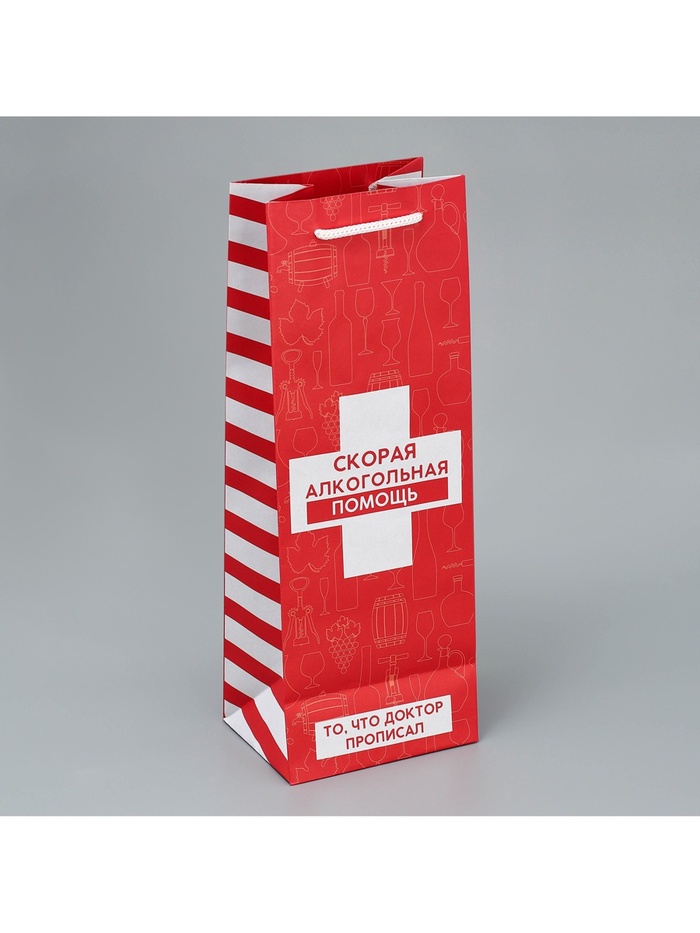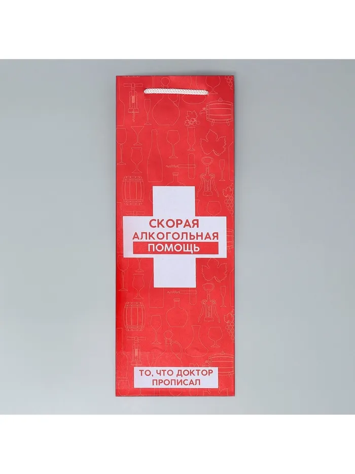 Пакет подарочный под бутылку, упаковка, «Алкопомощь», 36 х 13 х 10 см — Характеристики