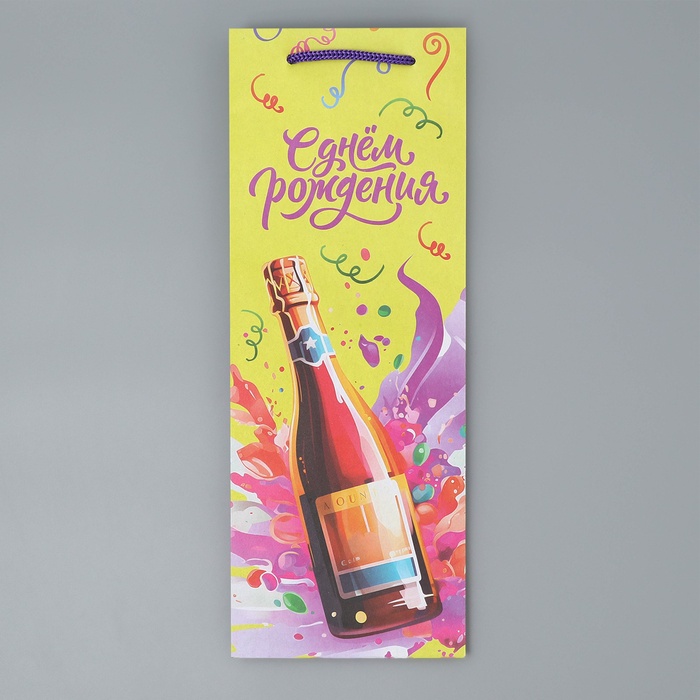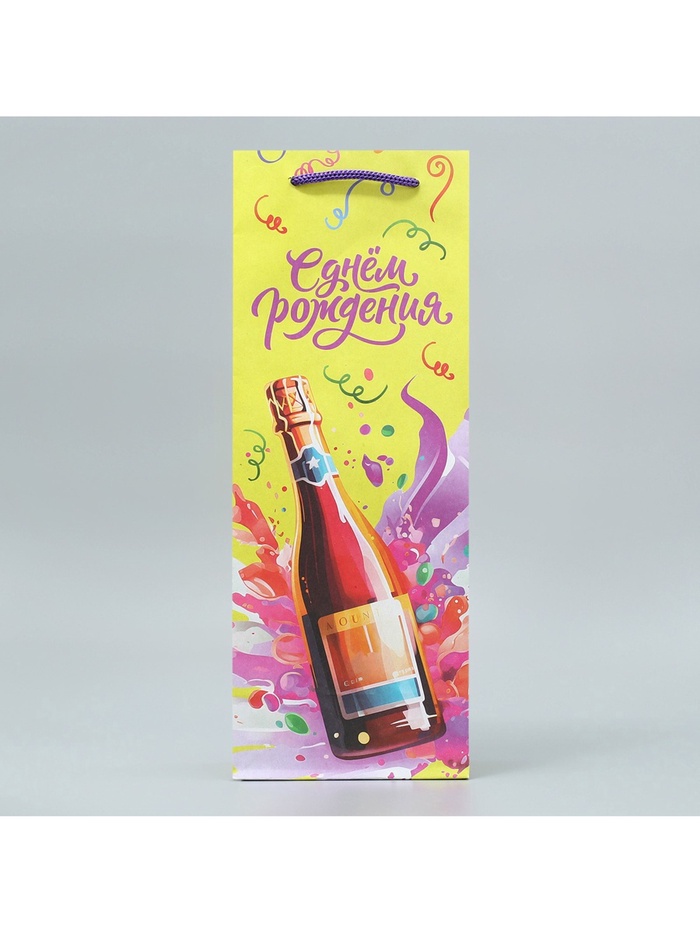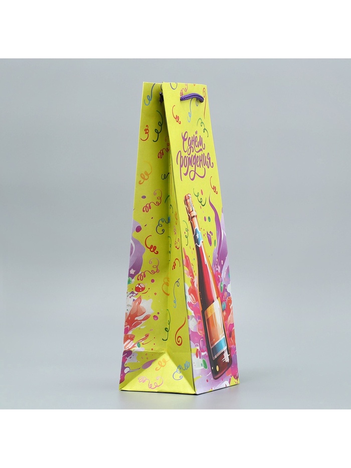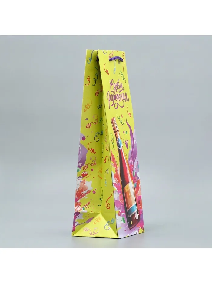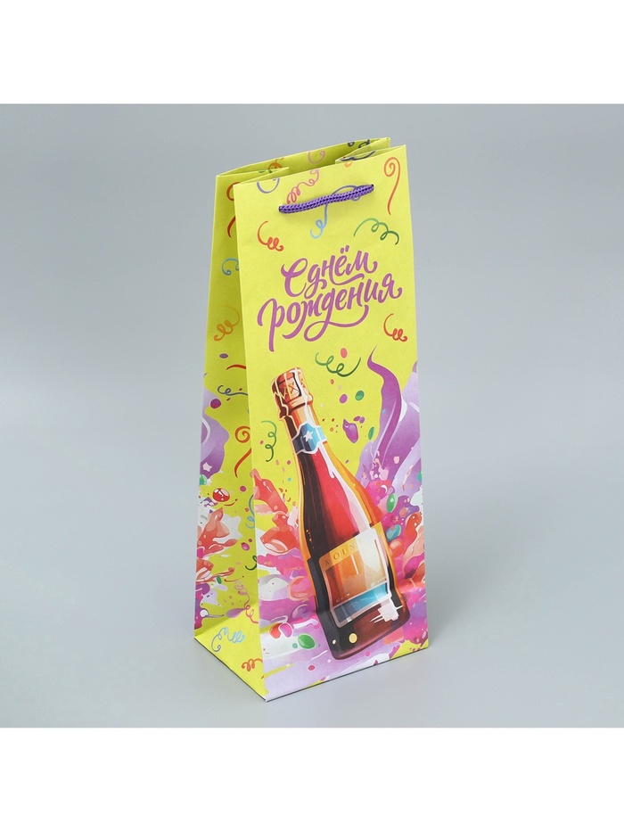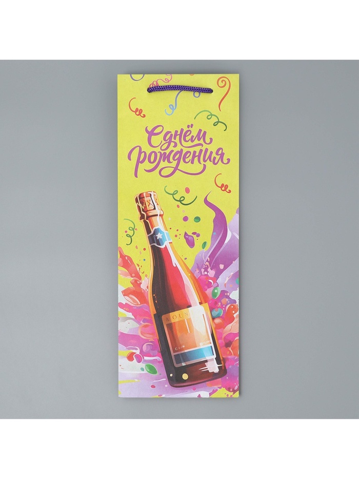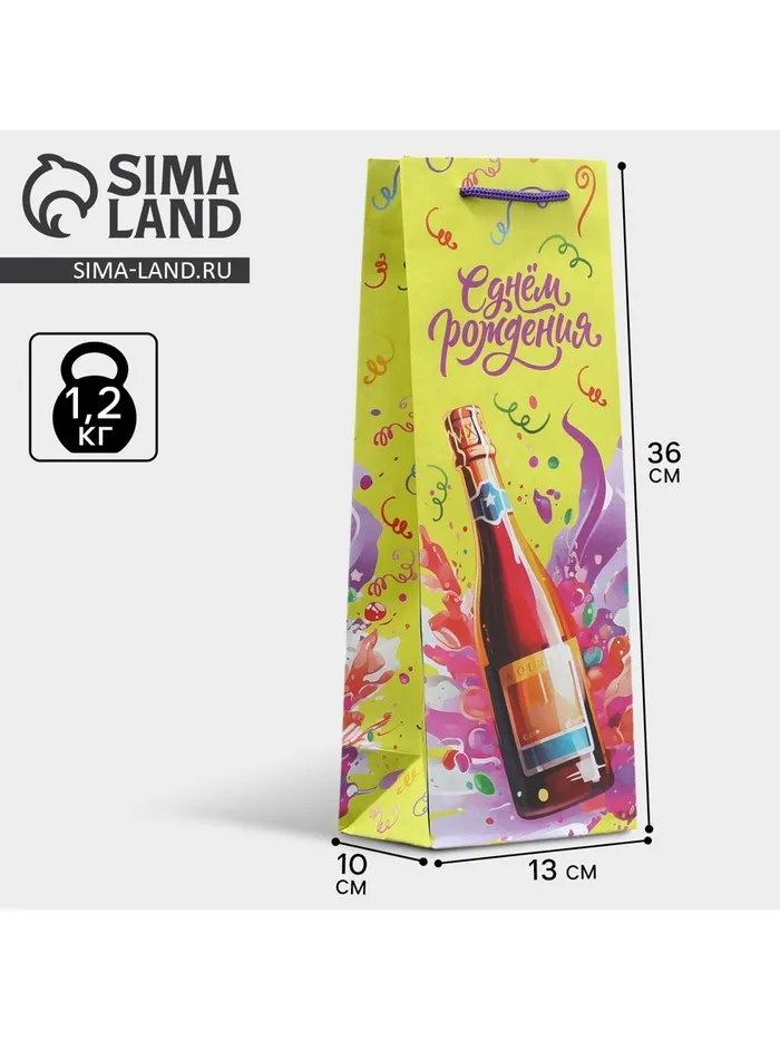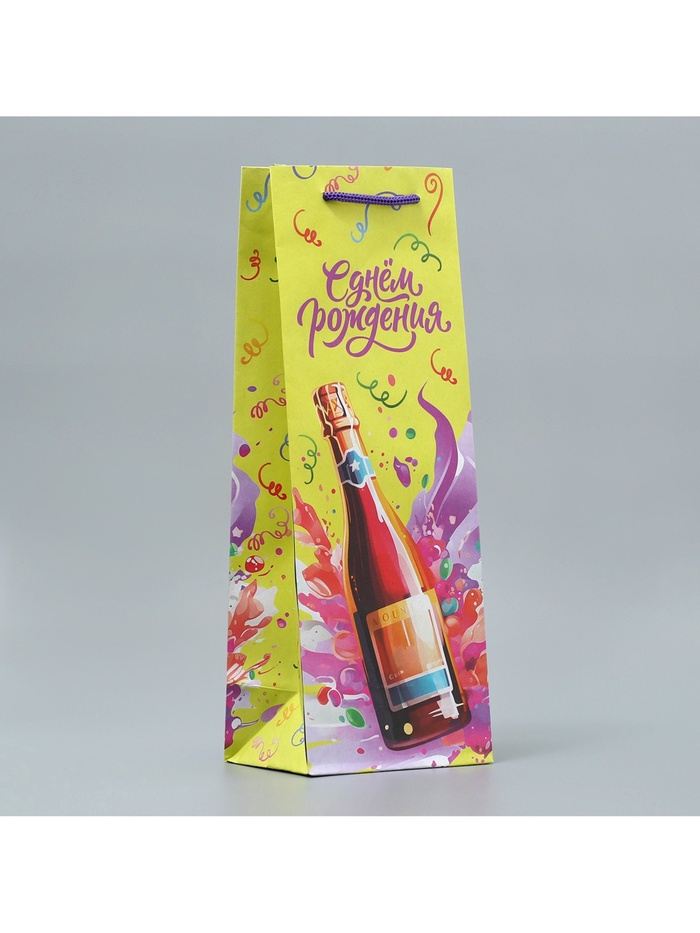 Пакет подарочный под бутылку, упаковка, «День рождения», 36 х 13 х 10 см — Характеристики