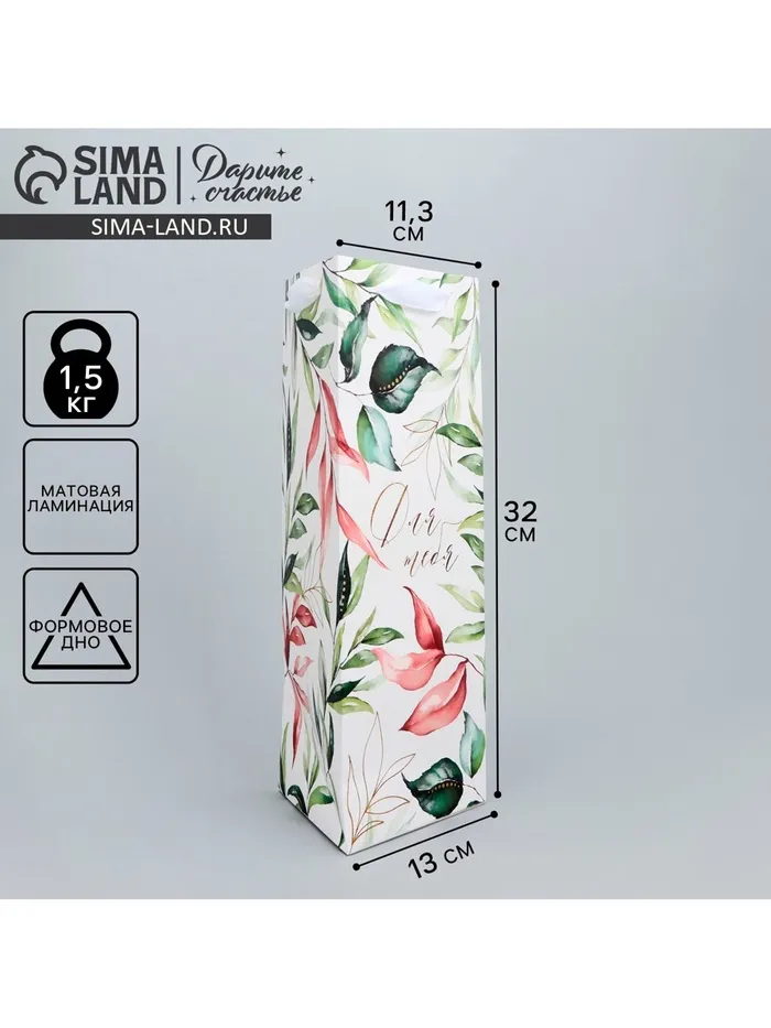 Пакет подарочный под бутылку, упаковка, «Для тебя», 13 х 32 х 11 см — Характеристики