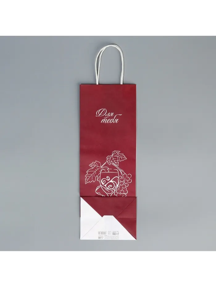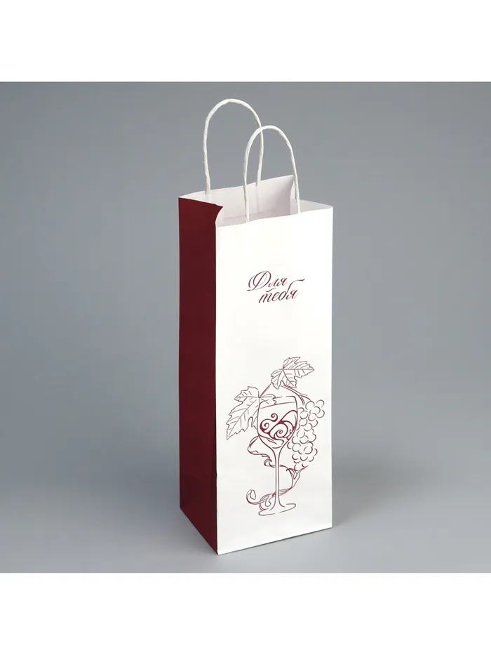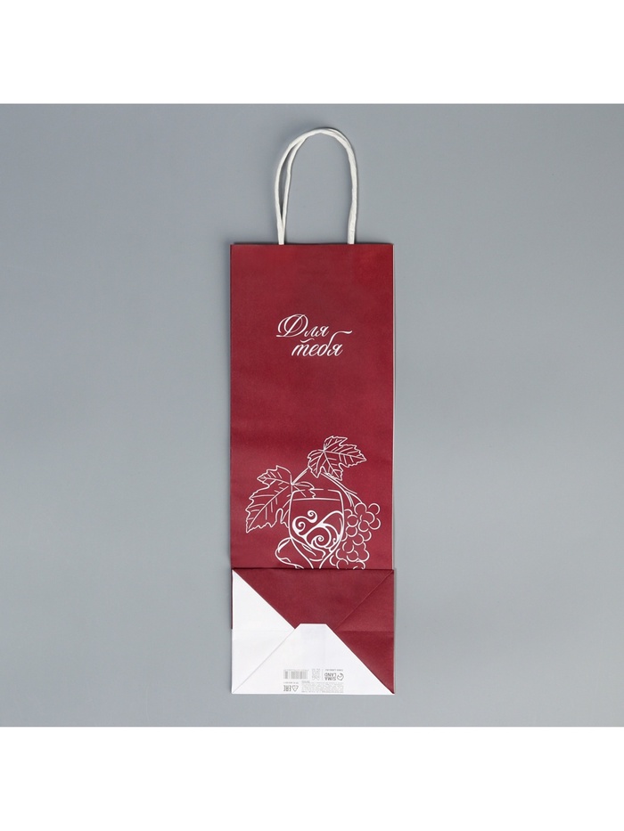 Пакет подарочный под бутылку, упаковка, «Для тебя», белый крафт, 13 х 36 х 10 см — Характеристики