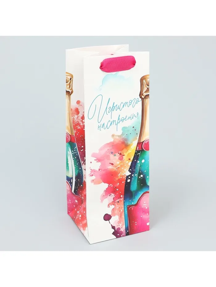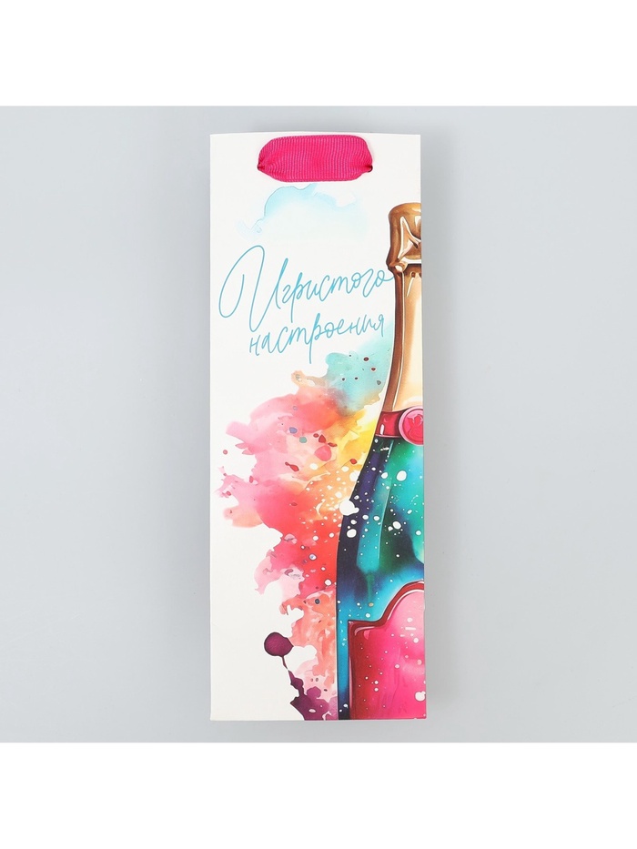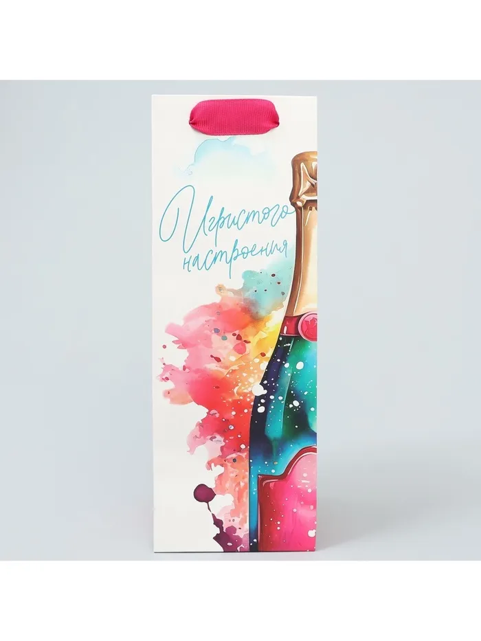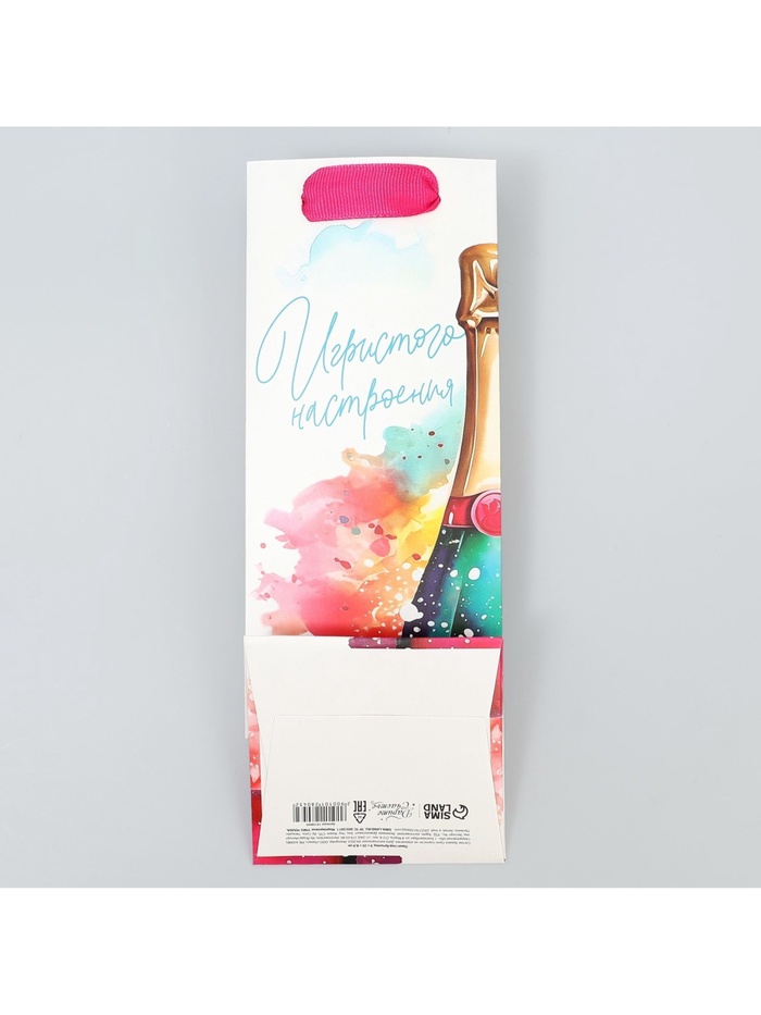 Пакет подарочный под бутылку, упаковка, «Игристое настроение», 9 х 25 х 8.5 см — Характеристики