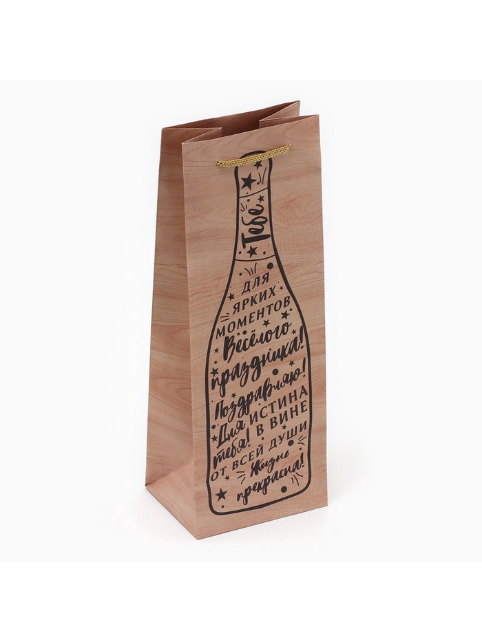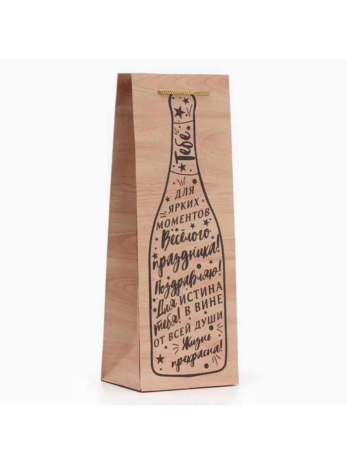 Пакет подарочный под бутылку, упаковка, «Истина в вине», 36 х 13 х 10 см — Характеристики