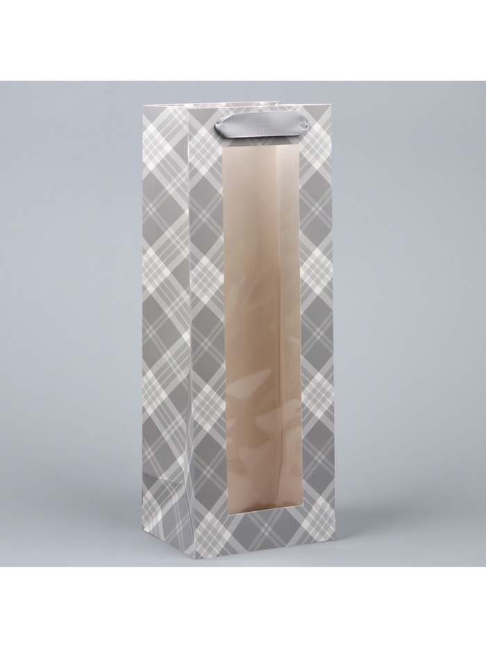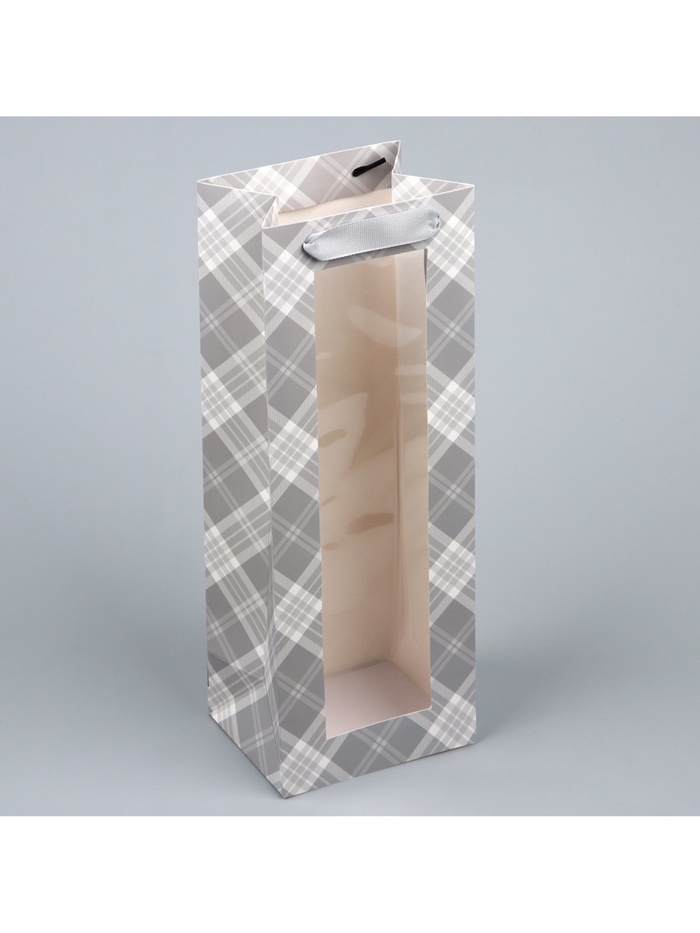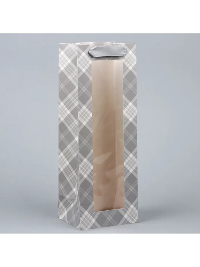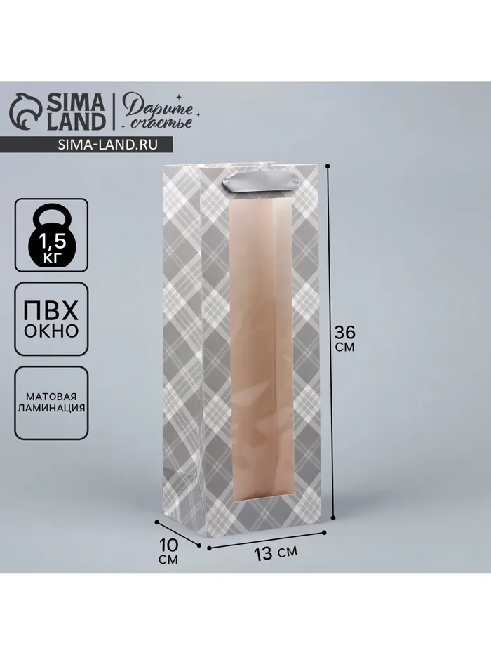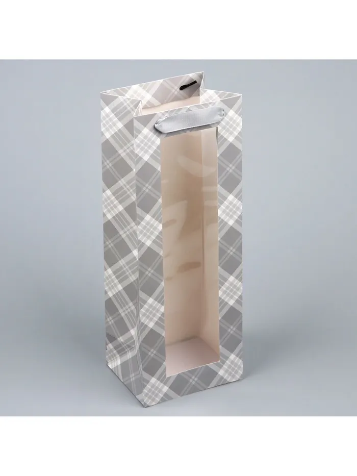 Пакет подарочный под бутылку, упаковка, «Клетка», 36 х 13 х 10 см — Характеристики