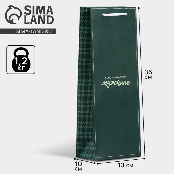 Пакет подарочный под бутылку, упаковка, «Мужчине», 36 х 13 х 10 см — Характеристики