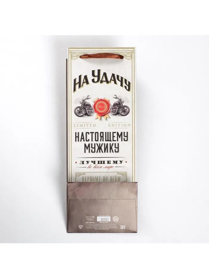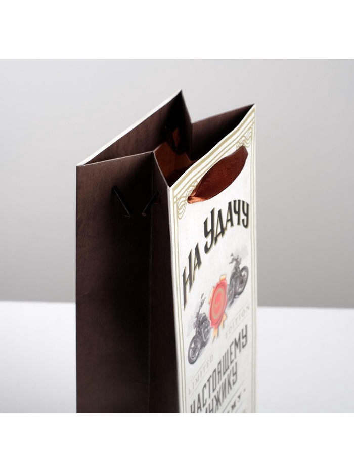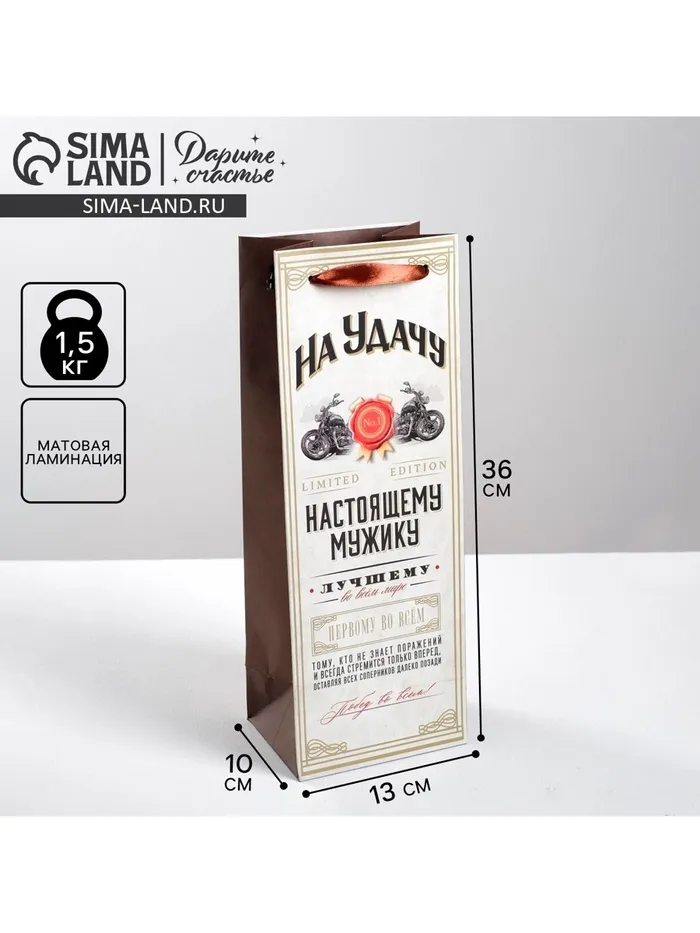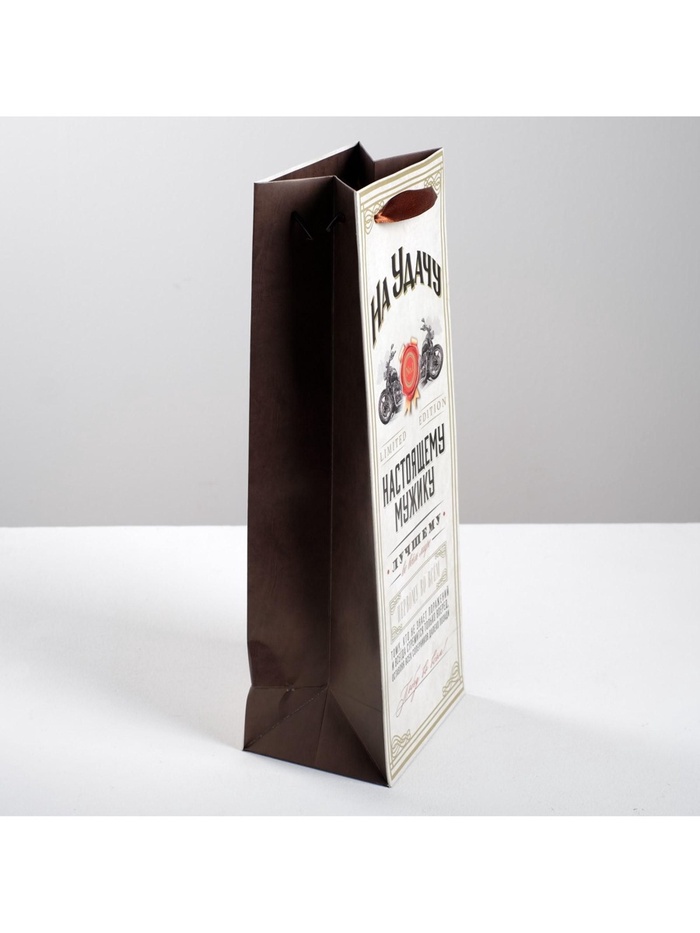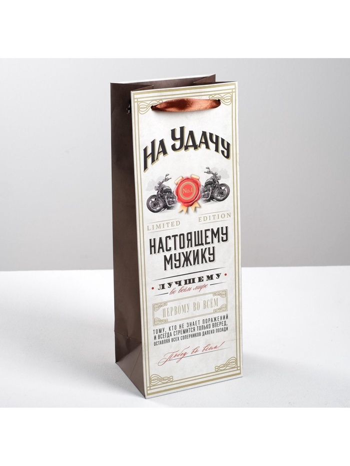 Пакет подарочный под бутылку, упаковка, «Настоящему мужику», 36 х 13 х 10 см — Характеристики