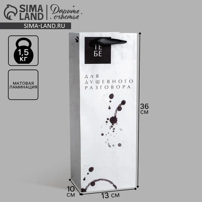 Пакет подарочный под бутылку, упаковка, «От души», 36 х 13 х 10 см — Характеристики