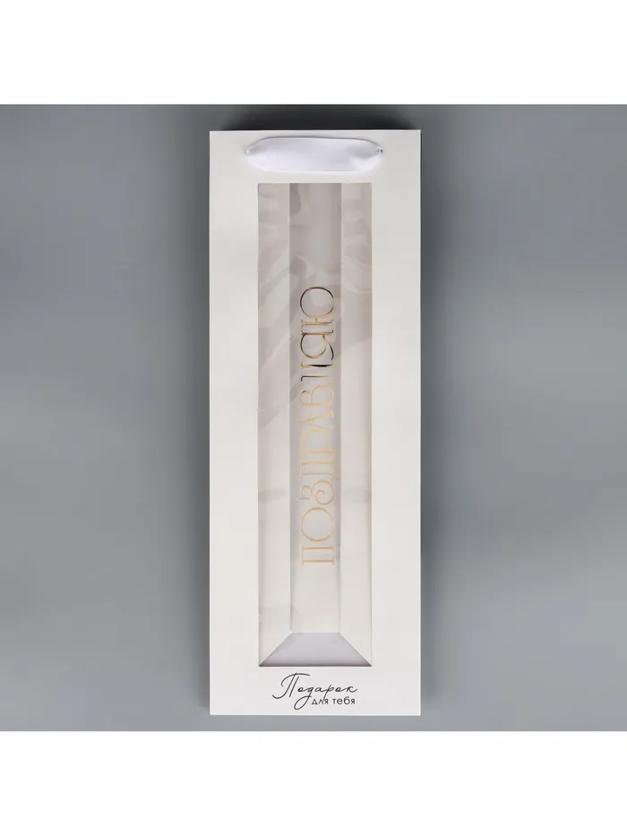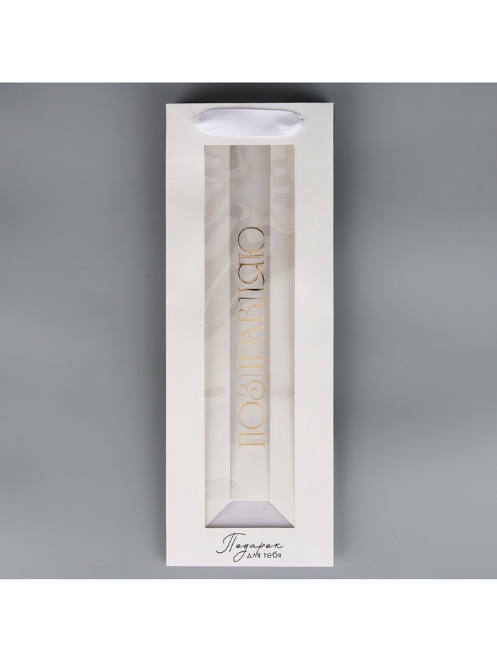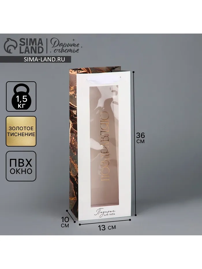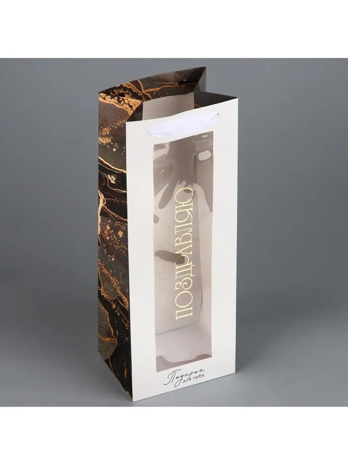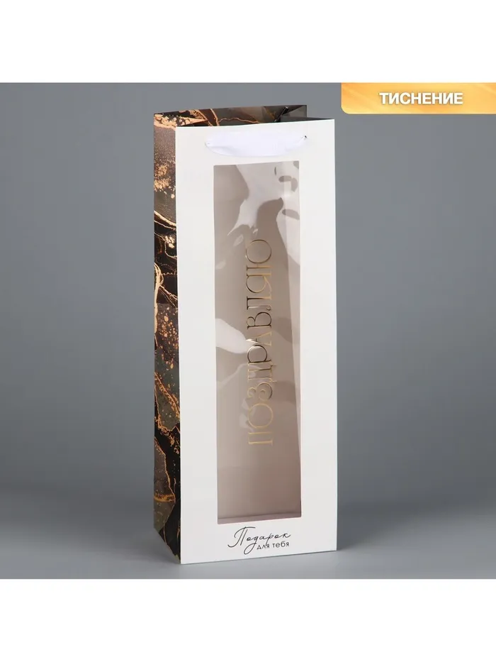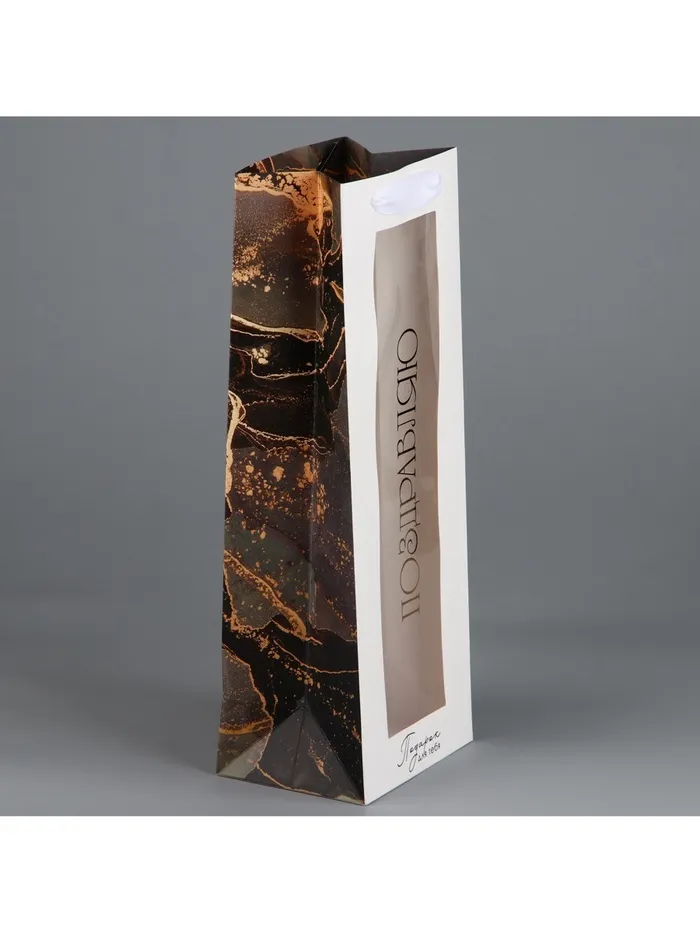 Пакет подарочный под бутылку, упаковка, «Поздравляю», мрамор, 36 х 13 х 10 см — Характеристики