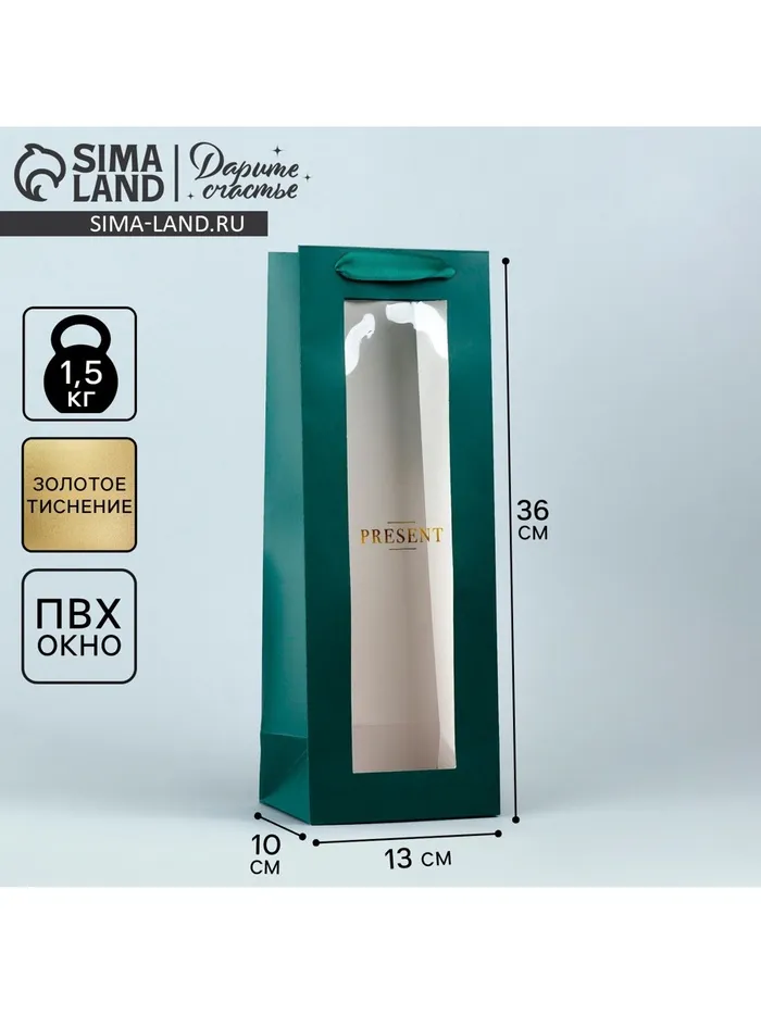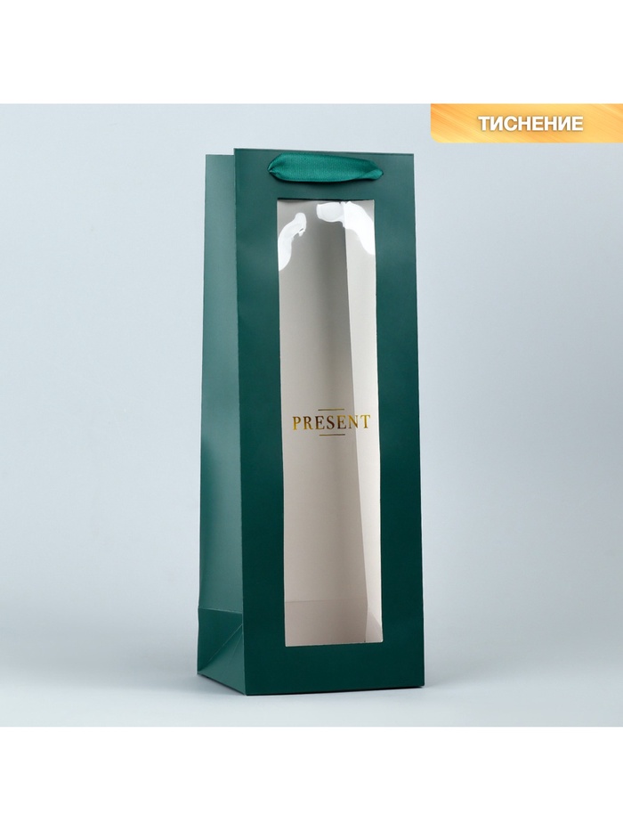 Пакет подарочный под бутылку, упаковка, «Present», 36 х 13 х 10 см — Характеристики