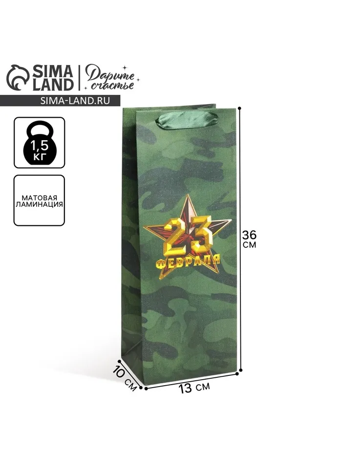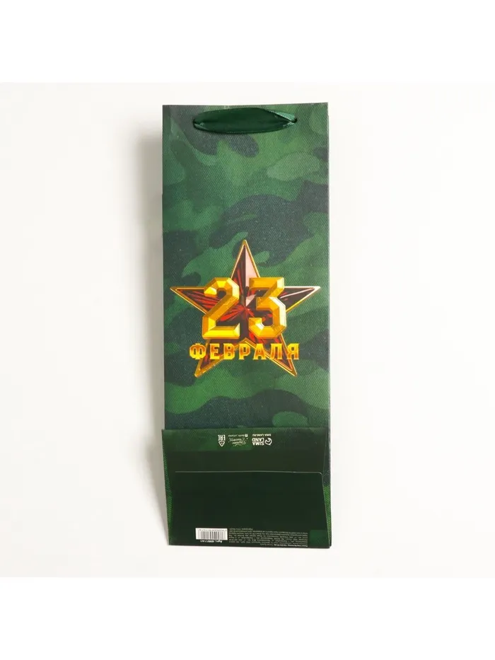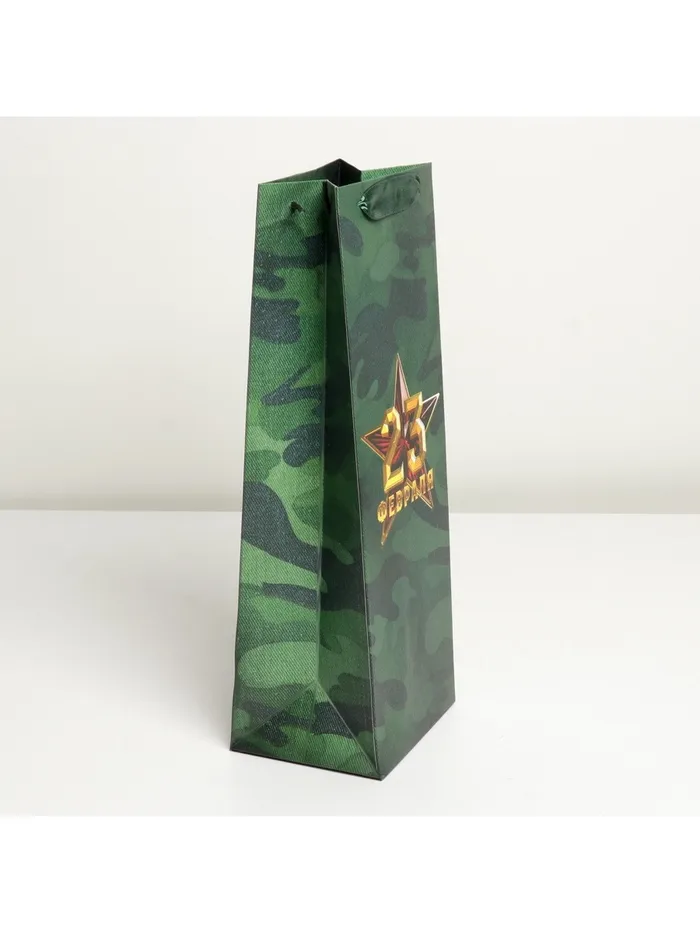 Пакет подарочный под бутылку, упаковка, «С 23 февраля», 13 х 36 х 10 см — Характеристики