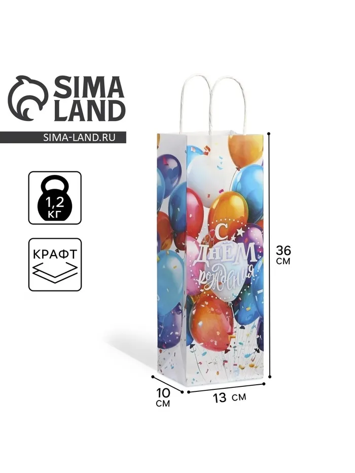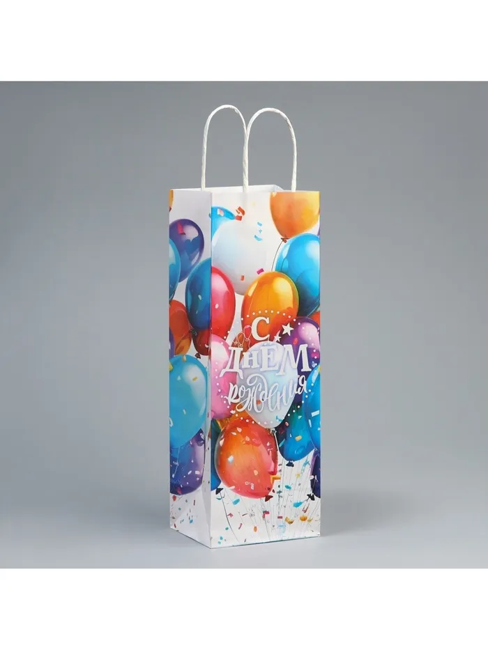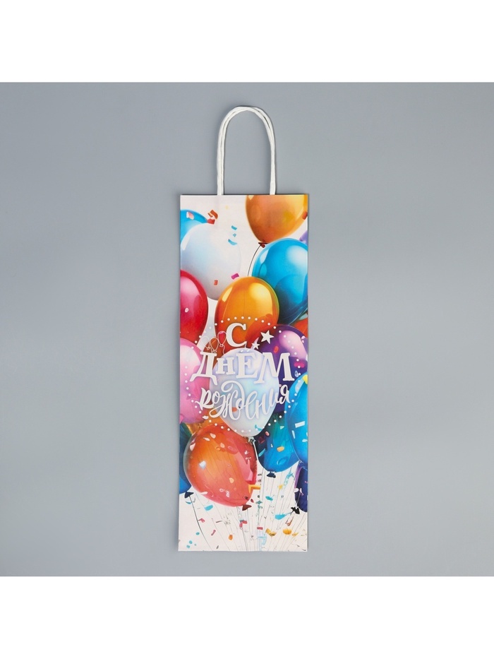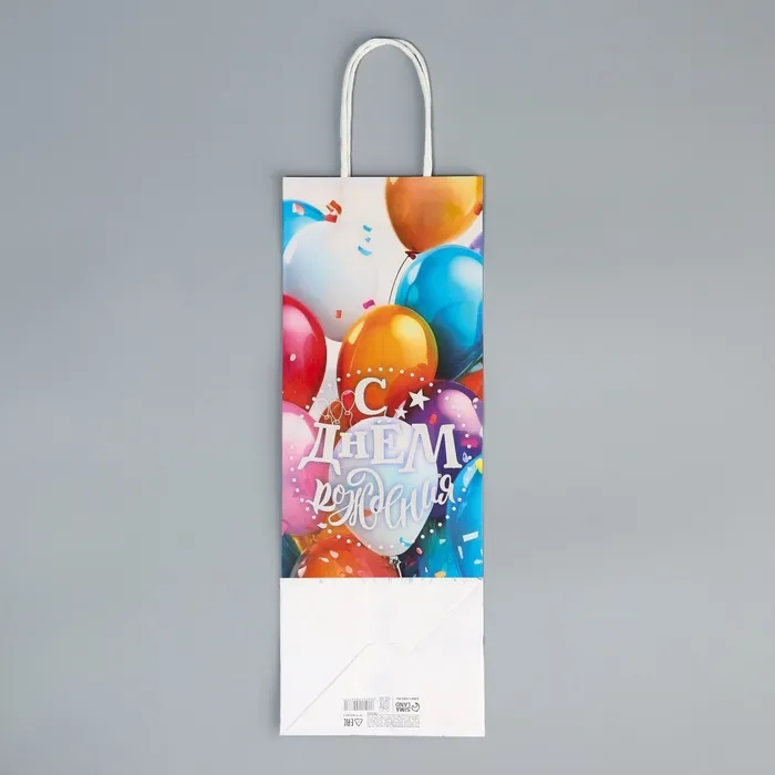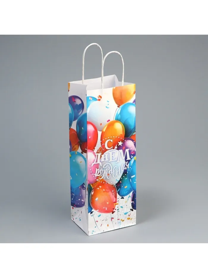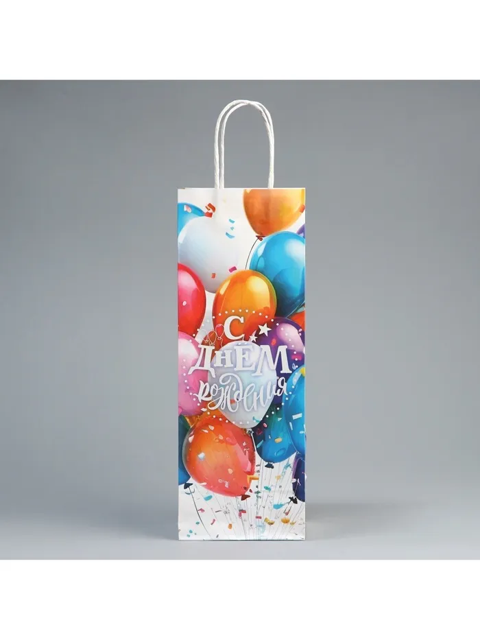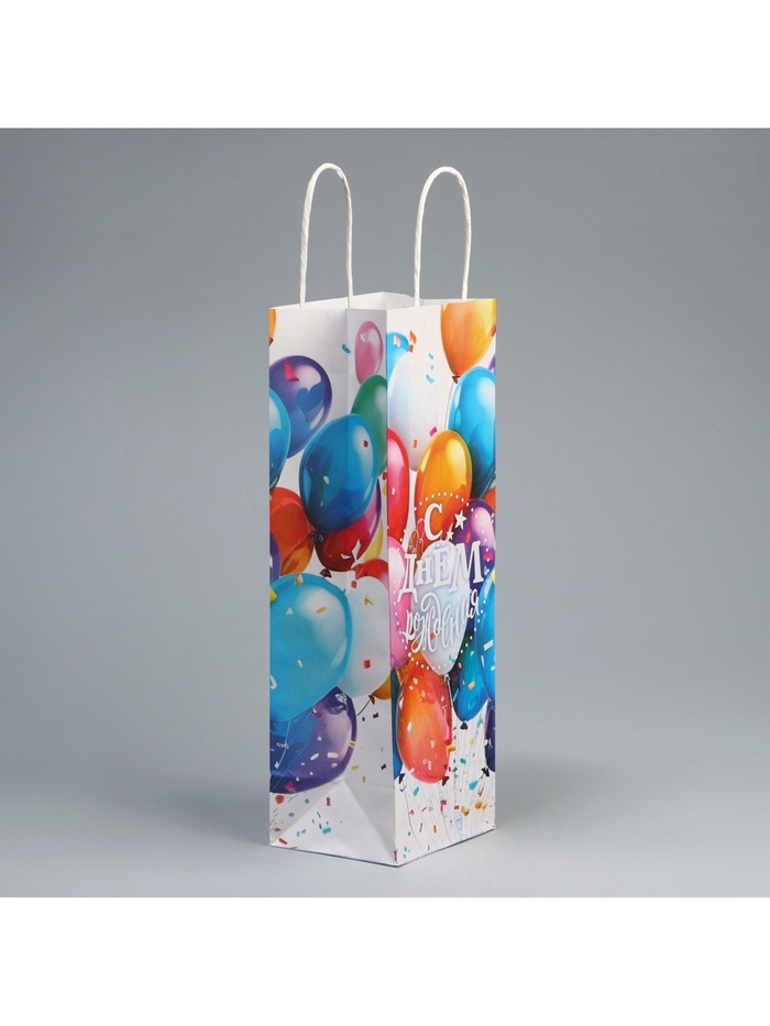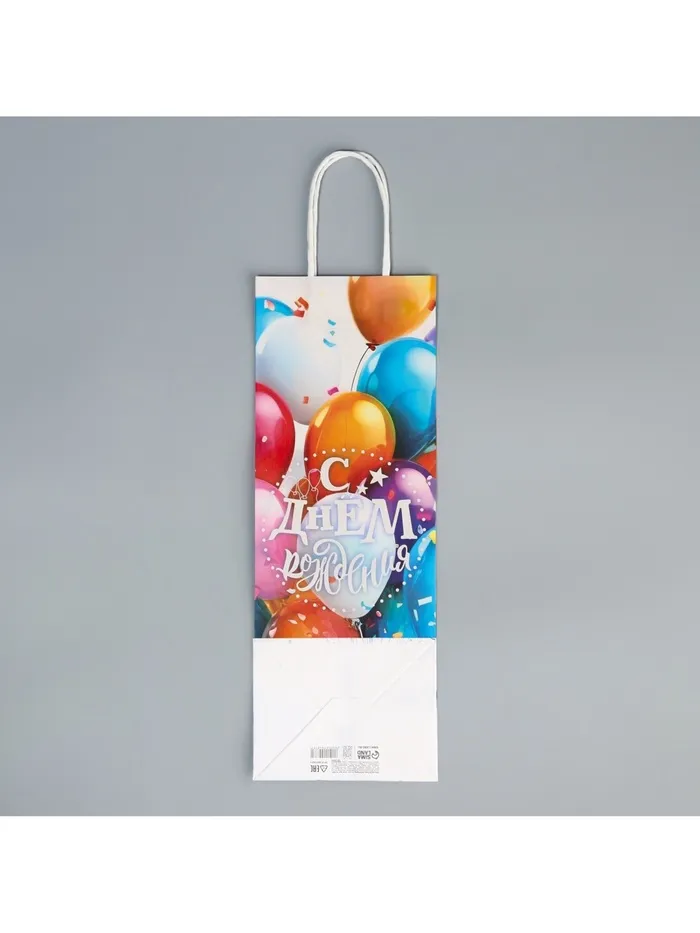Пакет подарочный под бутылку, упаковка, «С Днём рождения», белый крафт, 13 х 36 х 10 см — Характеристики