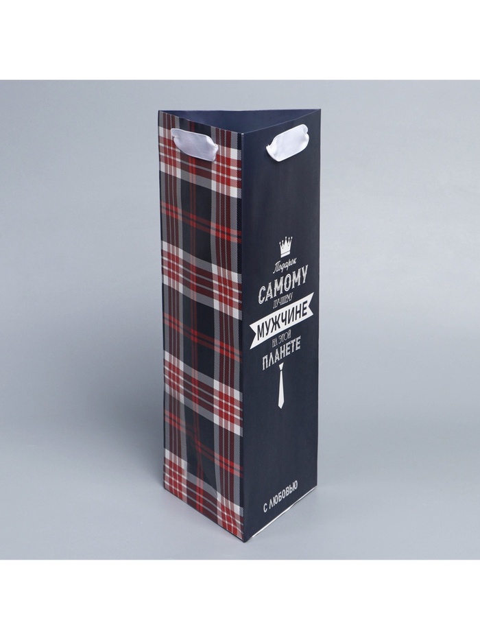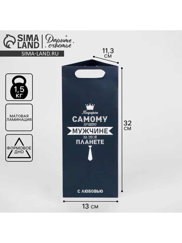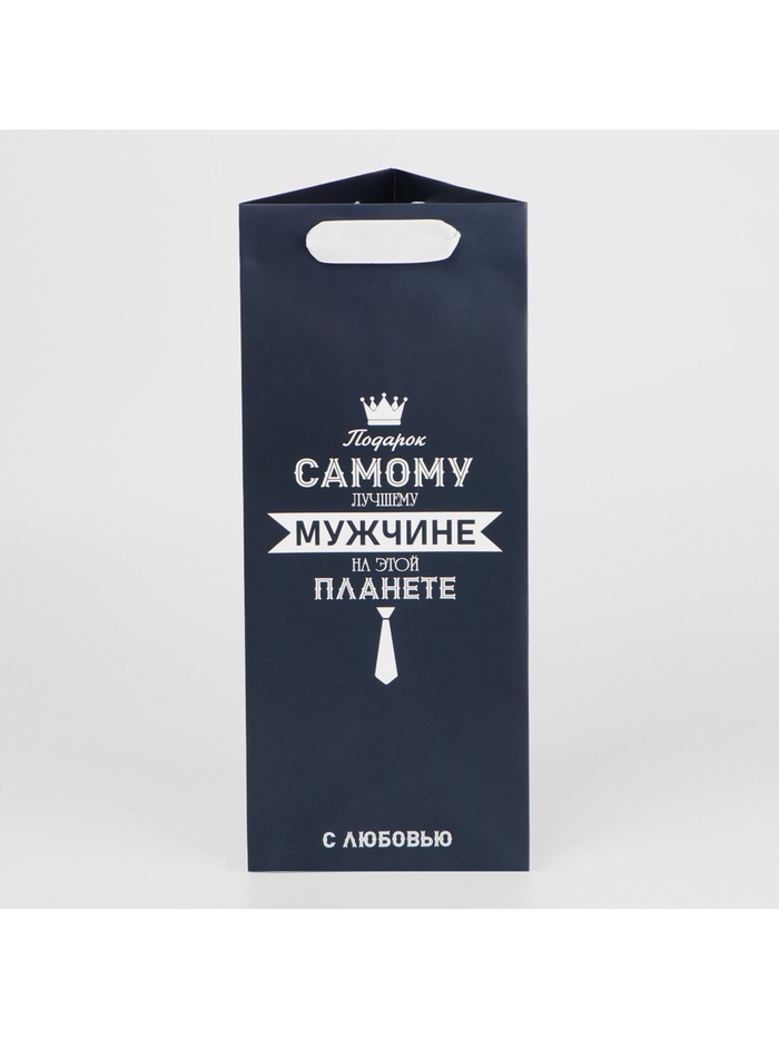 Пакет подарочный под бутылку, упаковка, «Самому лучшему мужчине», 13 х 32 х 11 см — Характеристики