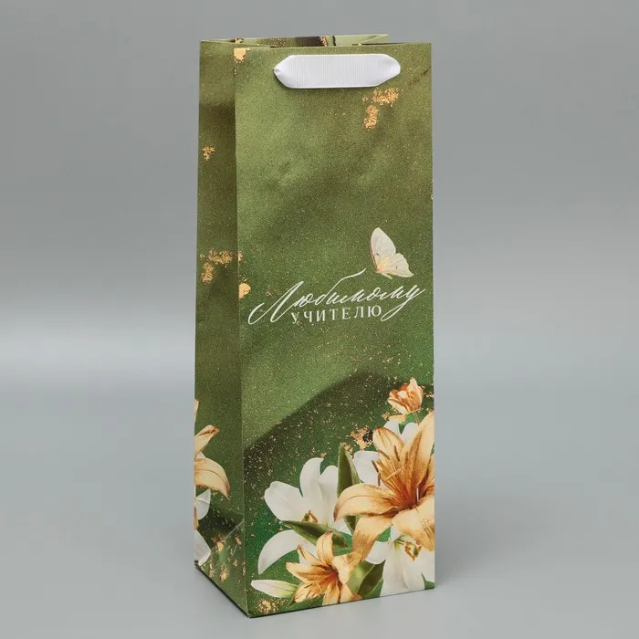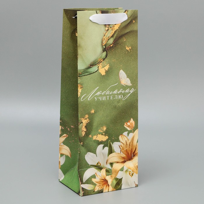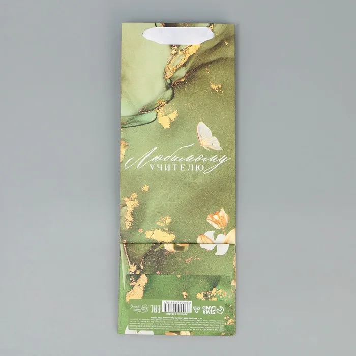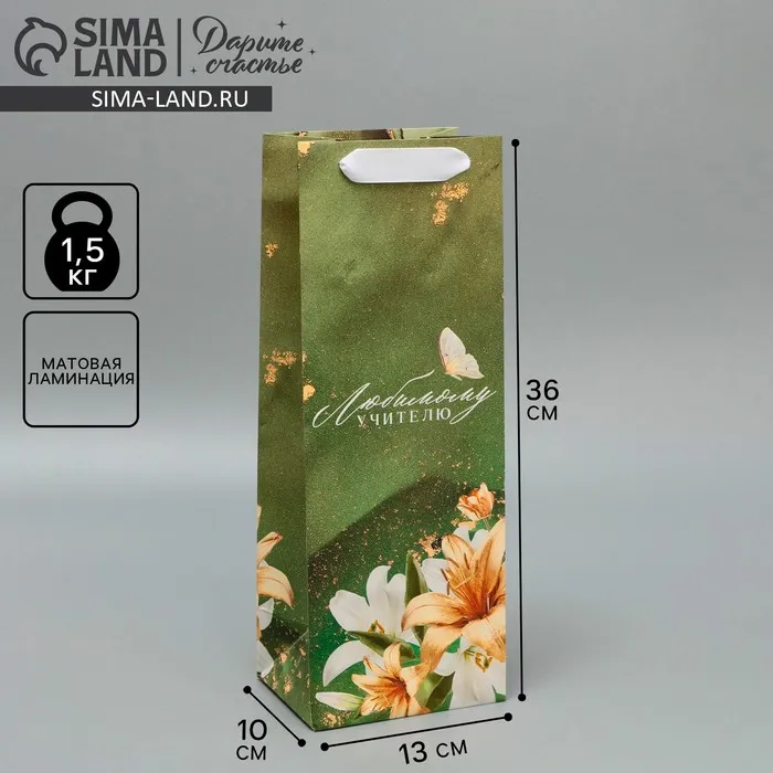 Пакет подарочный под бутылку, упаковка, «Учителю», 35 х 13 х 10 см — Характеристики