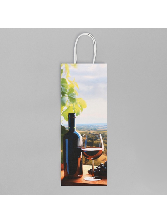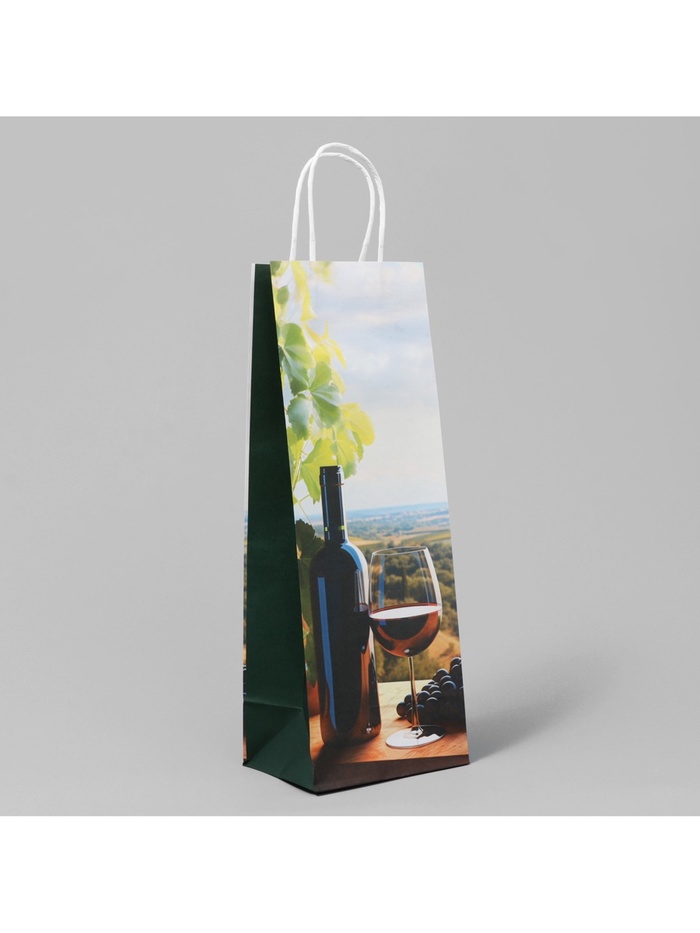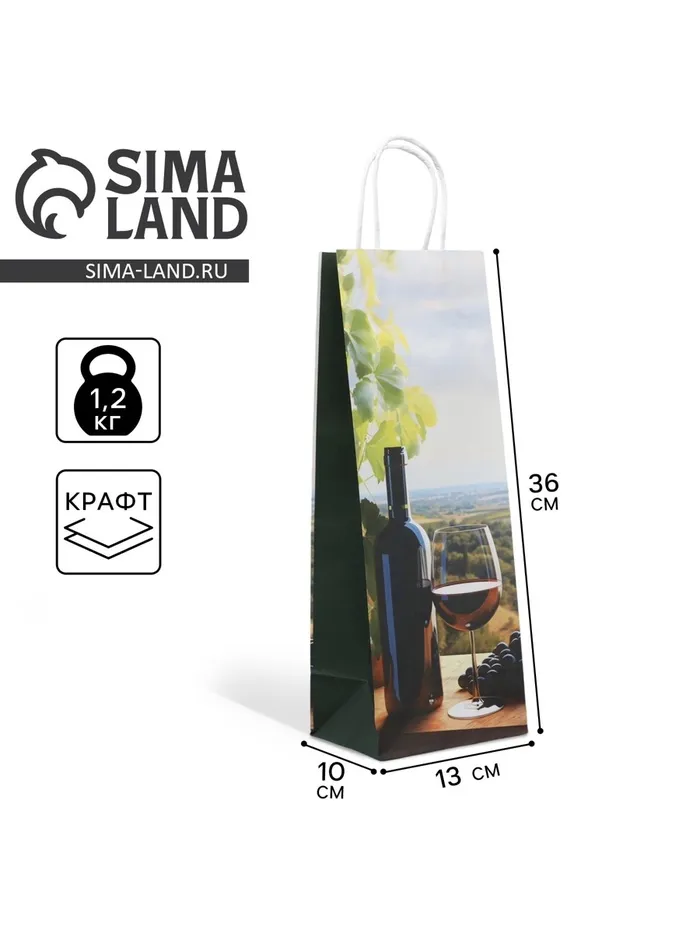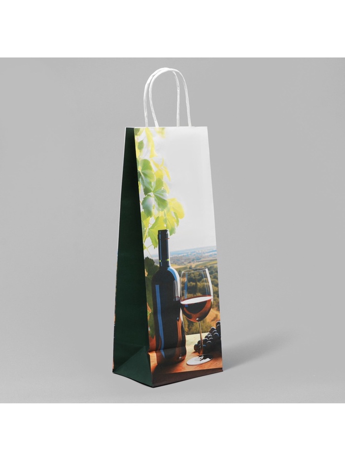 Пакет подарочный под бутылку, упаковка, «Вино», белый крафт, 13 х 36 х 10 см — Характеристики