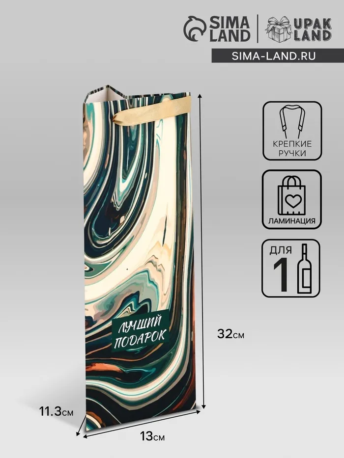 - Его размеры 13 × 32 × 11,3 см идеально подходят для большинства стандартных винных и шампанских бутылок, обеспечивая надежную защиту вашего подарка.