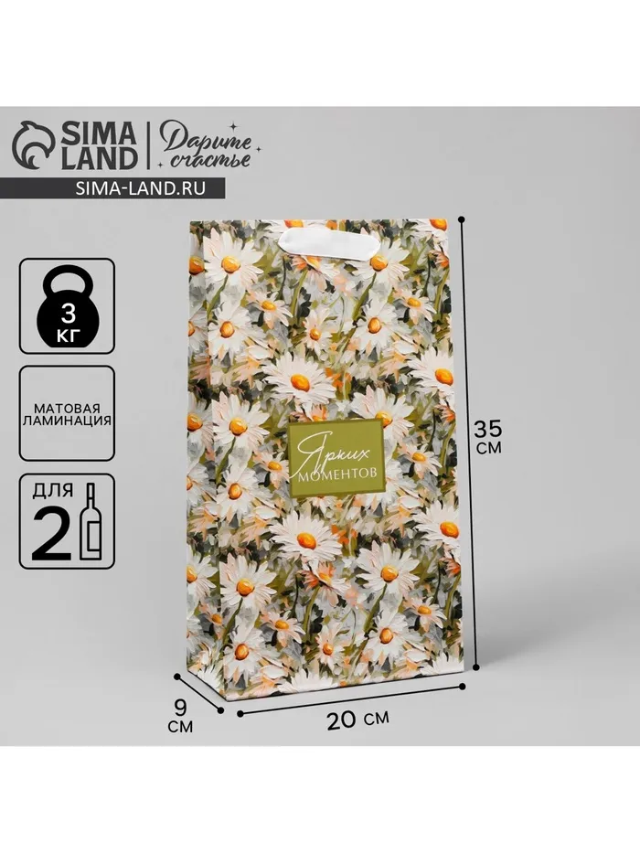 Пакет подарочный под две бутылки, упаковка, «Яркие моменты», 35 х 20 х 9 см — Характеристики