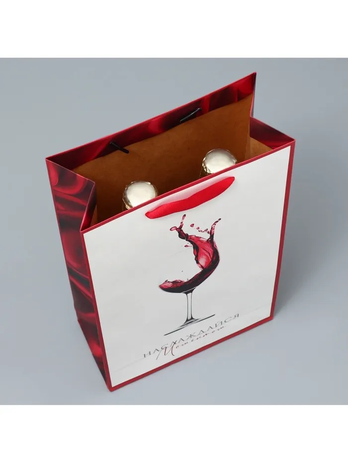 Пакет подарочный под две бутылки, упаковка, «Наслаждайся», 35 х 20 х 9 см — Характеристики