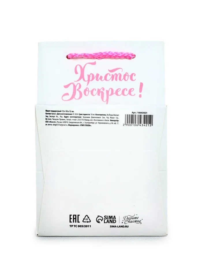Пакет подарочный под кулич «Пасха», 12 х 18 х 12 см — Характеристики