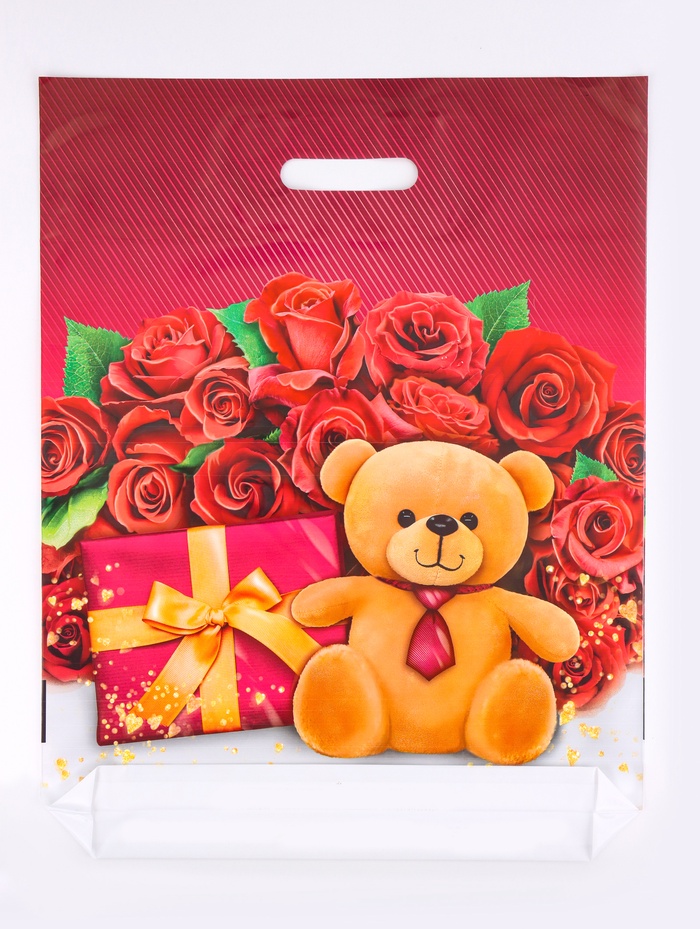 Трогательное решение для особых подарков: Этот пакет выбирают для упаковки сюрпризов в магазинах игрушек, кондитерских, бутиках парфюмерии и подарков. Сочетание цветочной и игровой тематики appeals к женщинам и девушкам, создавая образ заботливого внимания. Упаковка становится выражением теплых чувств — от первого впечатления до момента вручения подарка.