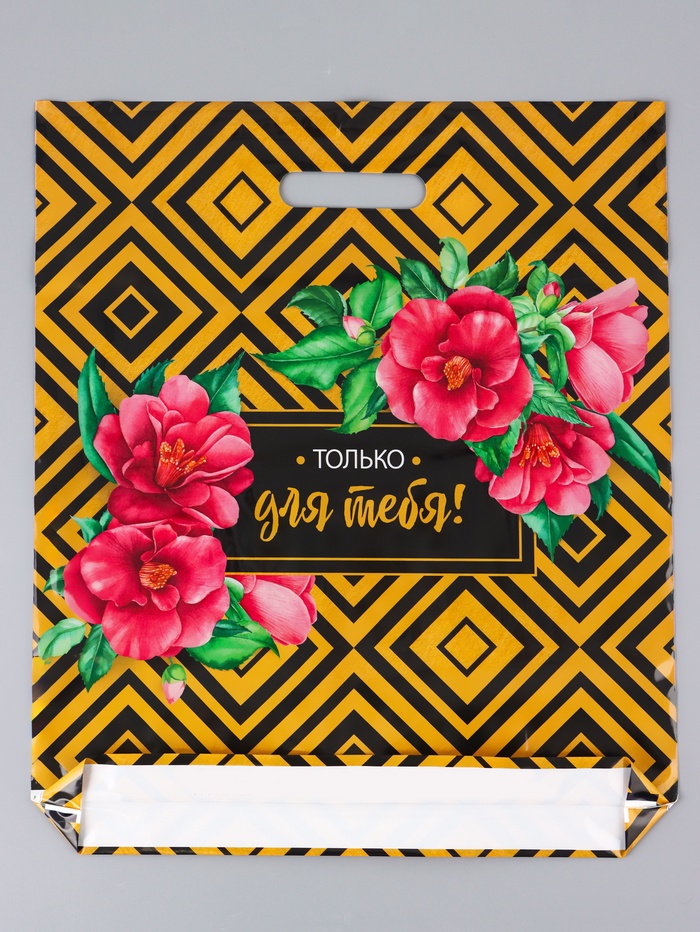 - Плотный материал для надёжности: Полиэтилен ПВД толщиной 60 мкм обеспечивает прочность и жёсткость. Пакет выдерживает вес и сохраняет презентабельный вид от момента упаковки до вручения.