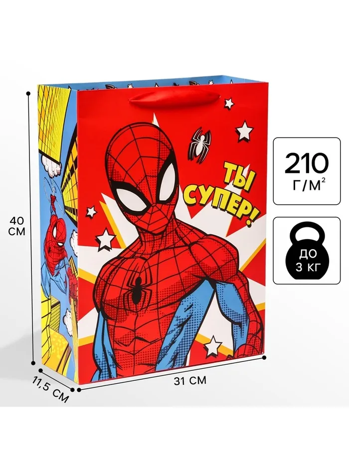 Пакет подарочный «Поздравляю»,31х40х11.5 см, упаковка, Человек-паук — Характеристики