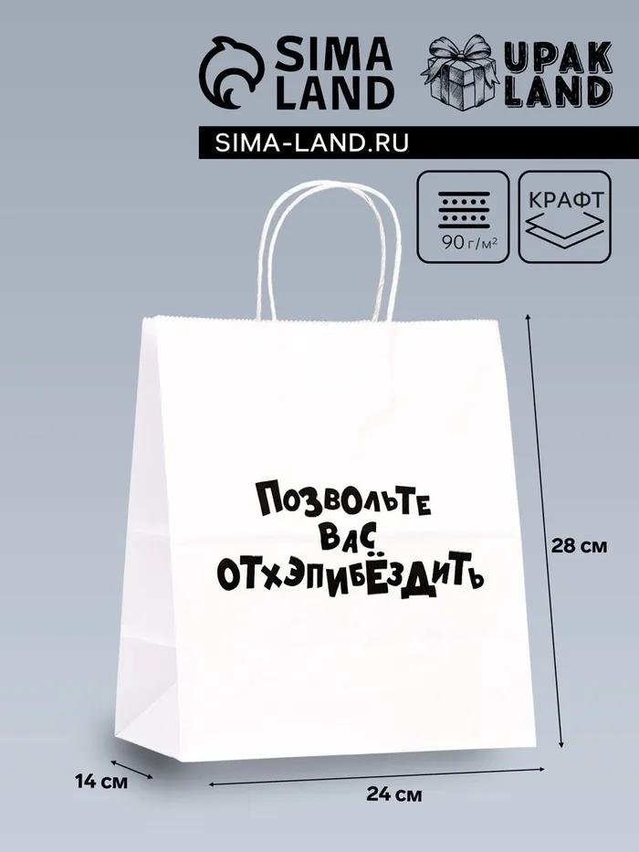 Пакет подарочный «Позвольте вас отхэпибёздить», 24×14×28 см — Характеристики