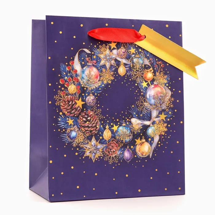 Пакет подарочный «Праздничный венок», 18×22.3×10 см — Характеристики