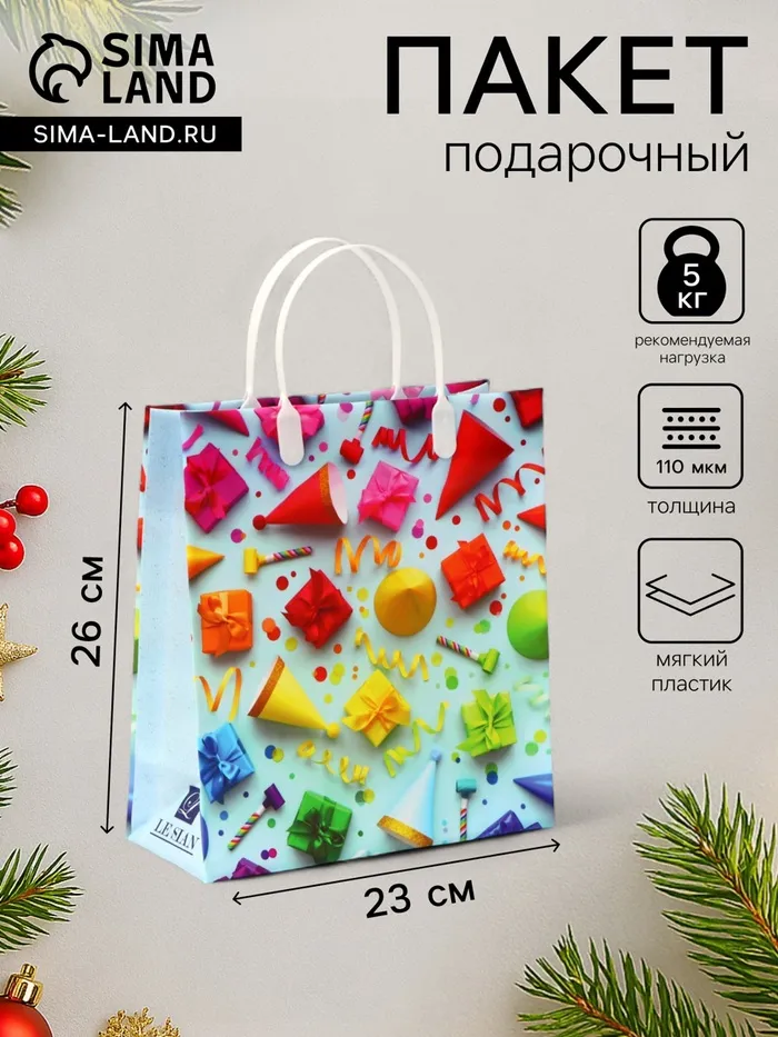 Пакет подарочный "Праздник" мягкий пластик 26 х 23 см. — Характеристики