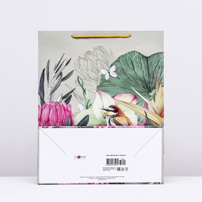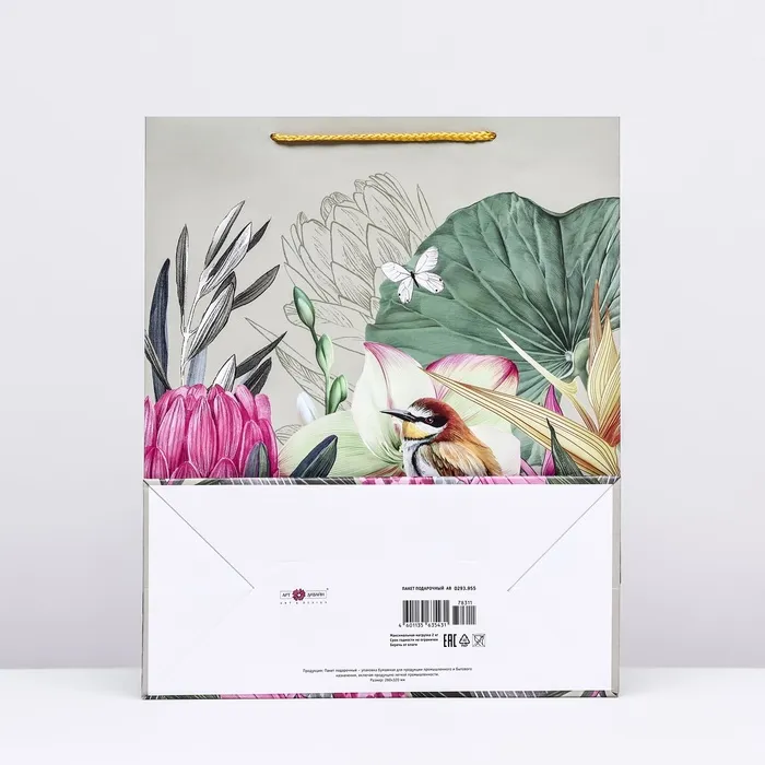 Пакет подарочный "Птичка в цветах", 26 х 32 х 12 см — Характеристики