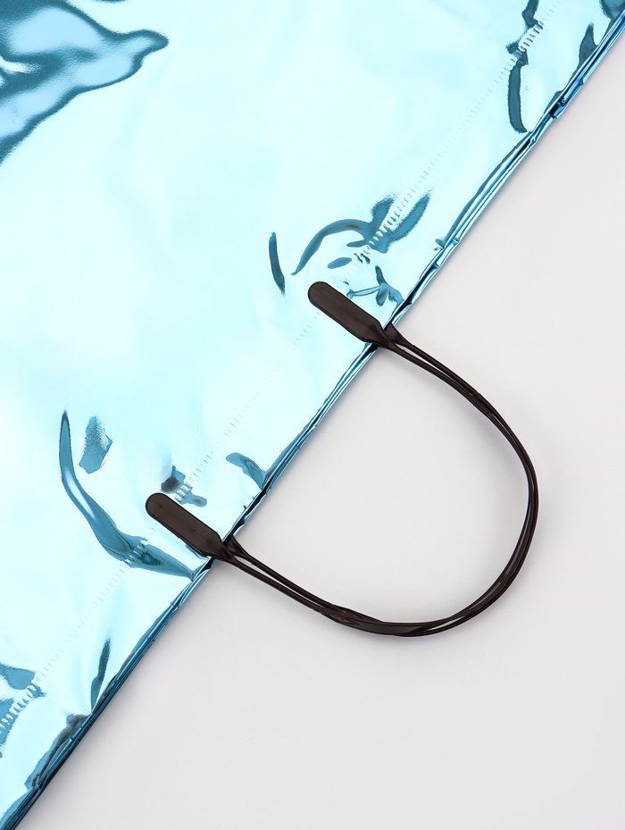 - Мерцающая голографическая отделка: Переливающаяся поверхность играет светом, создавая эффект движения и глубины. Такой пакет выглядит нарядно и современно, не требуя дополнительного декора.