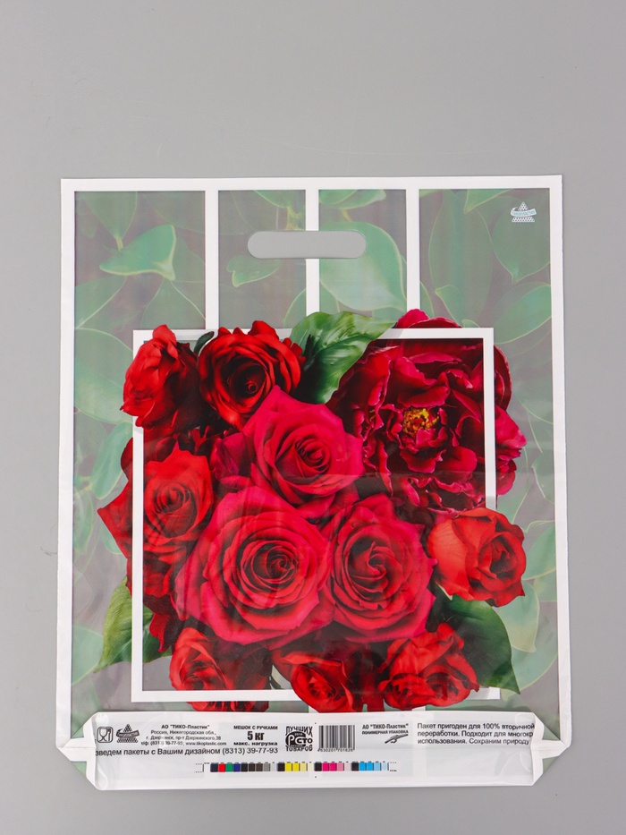Пакет подарочный «Розарий» полиэтиленовый с вырубной ручкой, 45×38 см 55 мкм — Характеристики