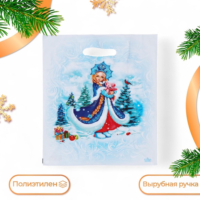 - Большой объём с усиленным дном: Габариты 38×45 см в сочетании с донной складкой обеспечивают значительный внутренний объем. Пакет подходит для крупных, но не тяжёлых подарков: пледов, мягких игрушек, подарочных корзин, пушистых халатов или воздушных тканей.
