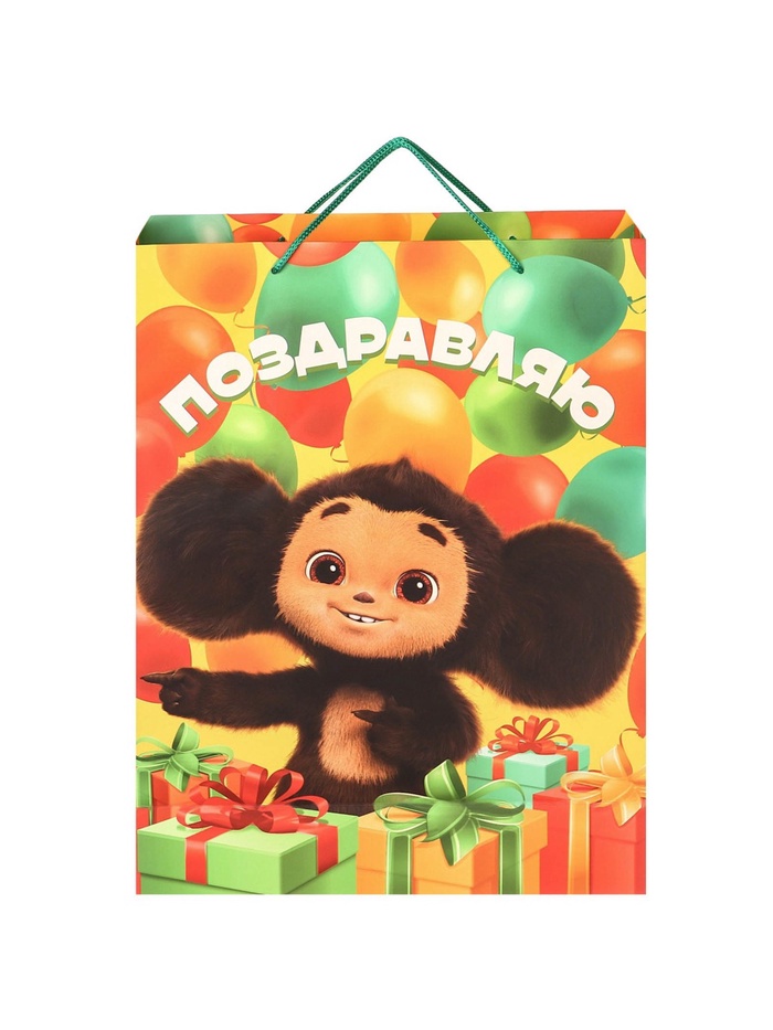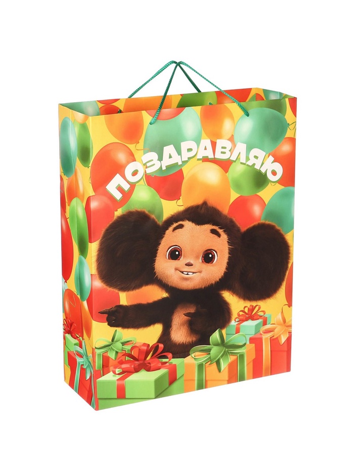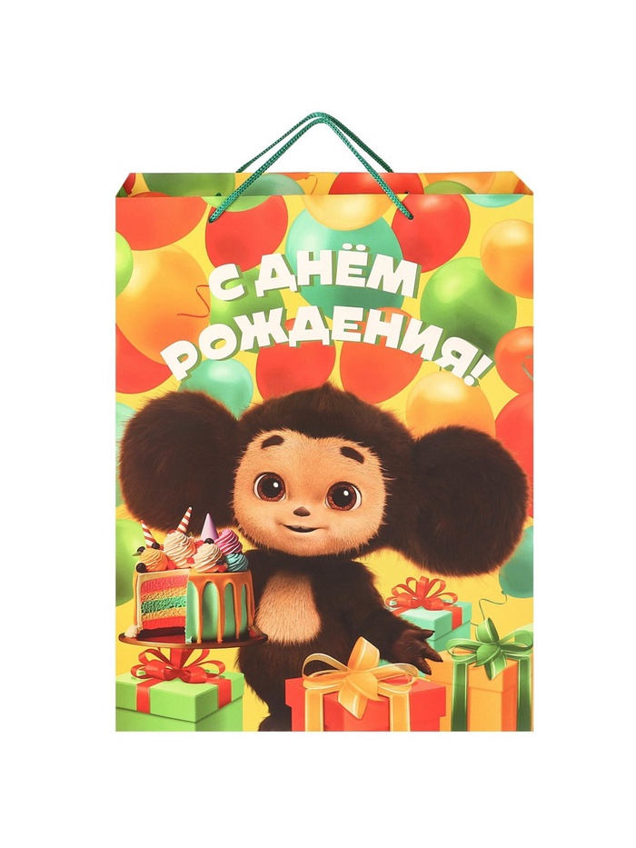 Пакет подарочный «С днём рождения», 31×40×11.5 см, упаковка, Чебурашка — Характеристики