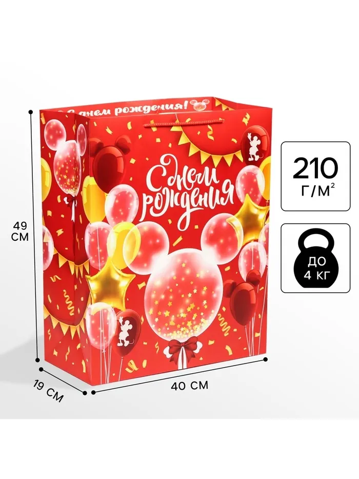 Пакет подарочный «С днём рождения», 40×49×19 см, упаковка, Микки Маус — Характеристики