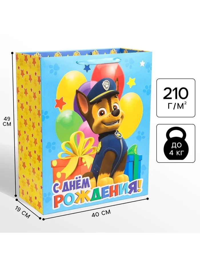 Пакет подарочный «С днём рождения», 40×49×19 см, упаковка, Щенячий патруль — Характеристики