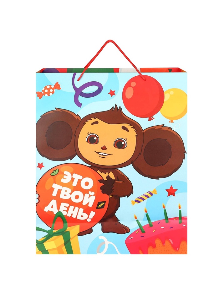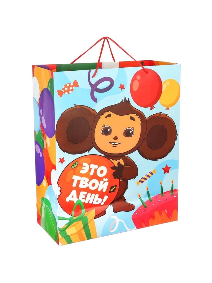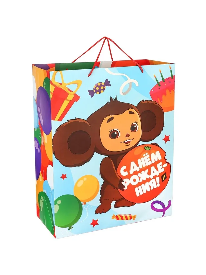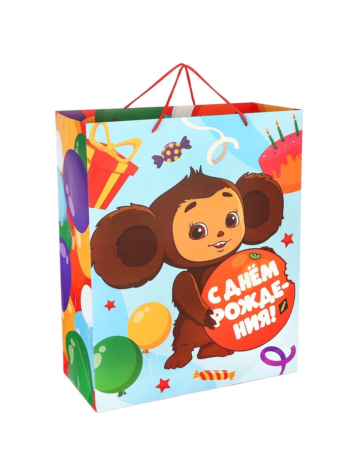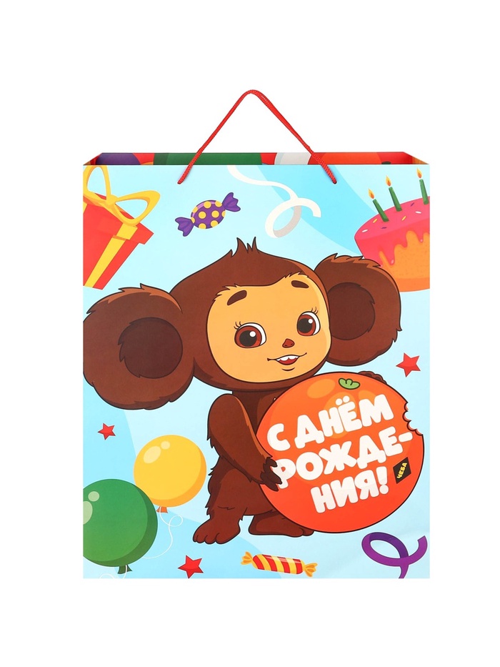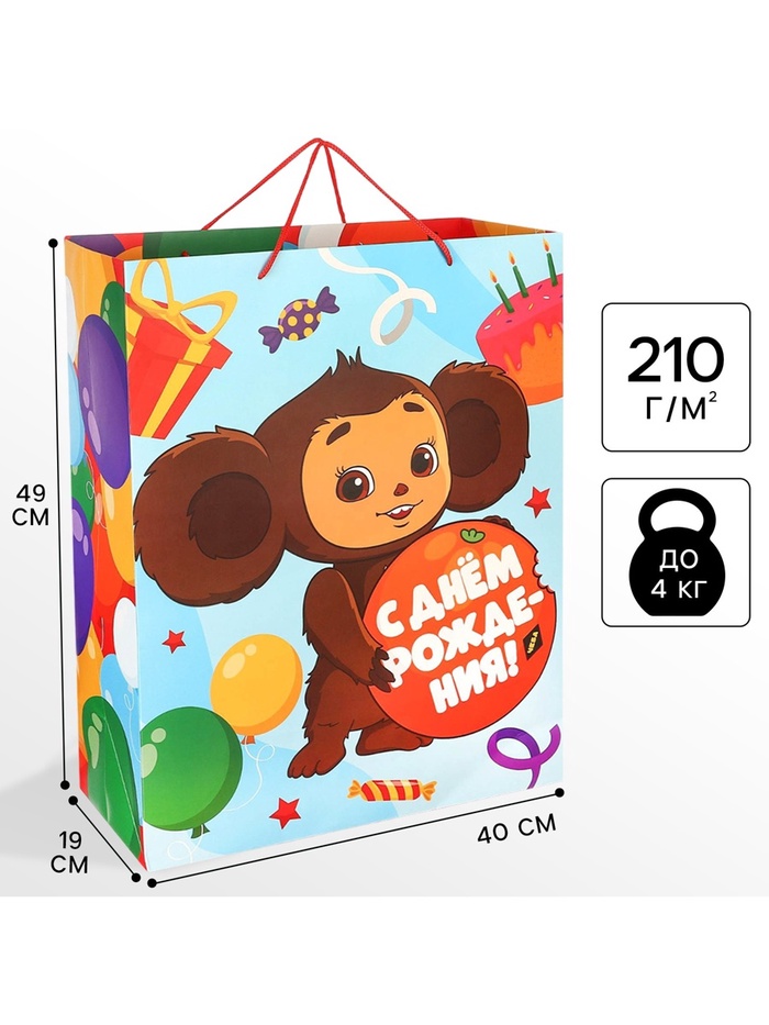 Пакет подарочный «С днём Рождения!», 49×40×19 см, упаковка, Чебурашка — Характеристики