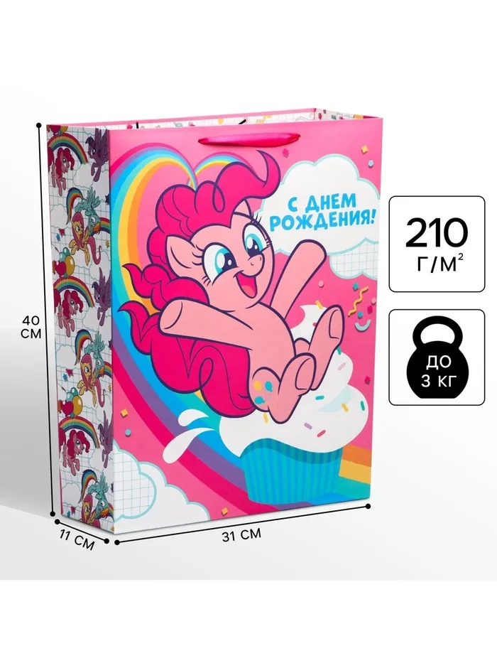 Пакет подарочный «С днём рождения!»,31х40х11 см, упаковка, My Little Pony — Характеристики